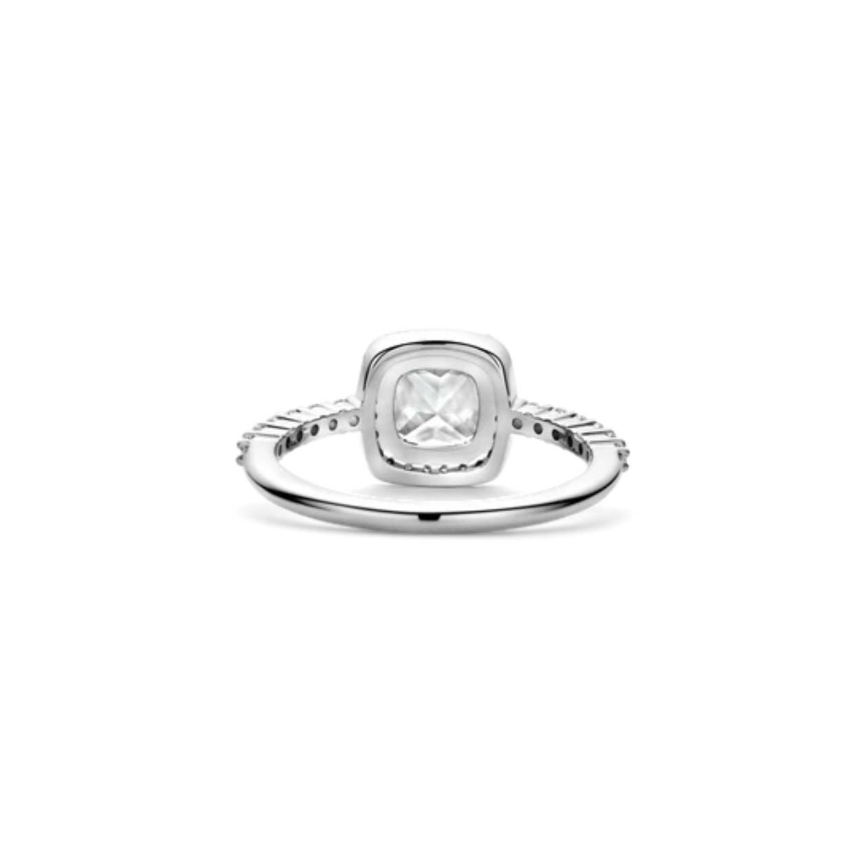 Geniet van verfijnde glans met deze TI SENTO platinakleurig vergulde zilveren ring 12389ZI. Vervaardigd uit 925 sterling zilver en voorzien van een spiegelend platinakleurige afwerking, is de band half bedekt met pavé-steentjes die de blik naar de 9 mm fantasy-cut witte cubic zirconia in het midden leiden. Een delicate micro-halo omlijst de centrale steen, versterkt elk lichtspel en geeft het ontwerp een tijdloze elegantie. Draag de ring solo als een opvallend sieraad voor een scherpe verfijning, of combineer hem met slanke stackers voor een persoonlijke sprankeling. Volledig nikkelvrij en hypoallergeen, biedt deze ring blijvende kwaliteit en moeiteloos comfort.