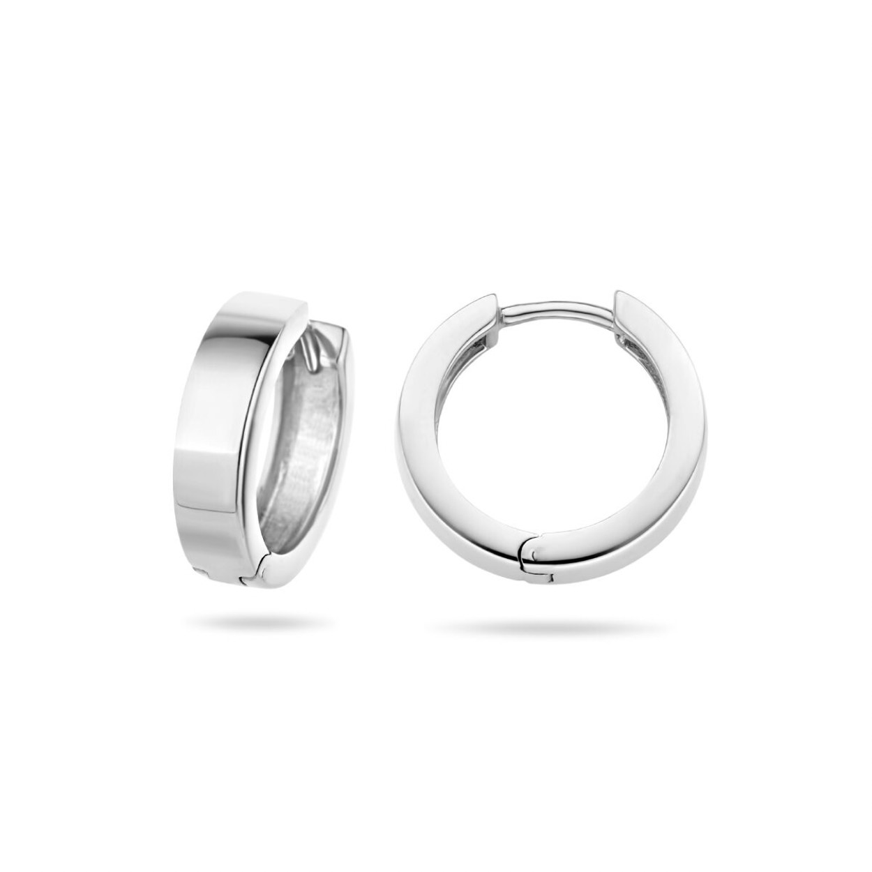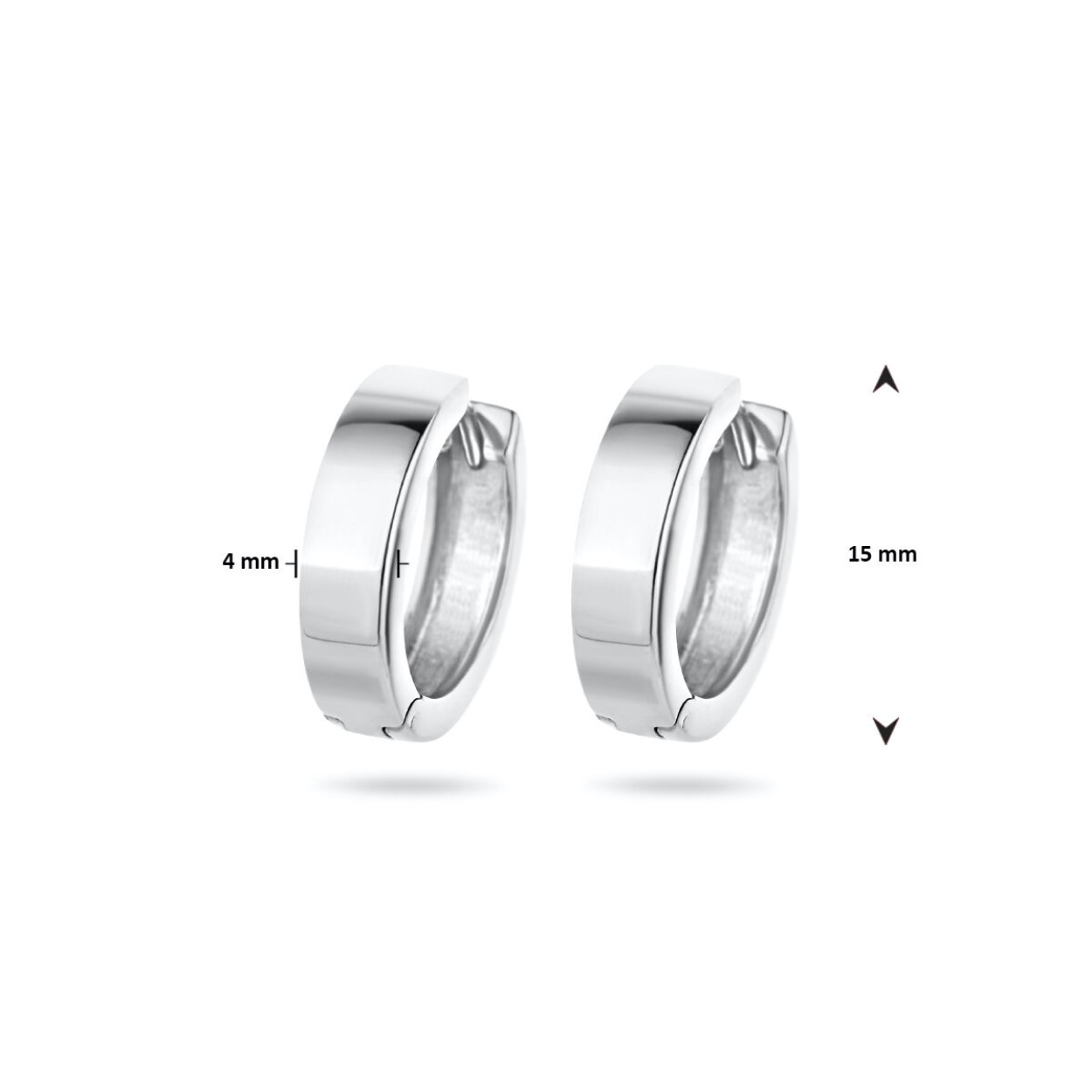 Gerhodineerd zilveren klapoorringen met een vlakke buis en een glanzende afwerking.