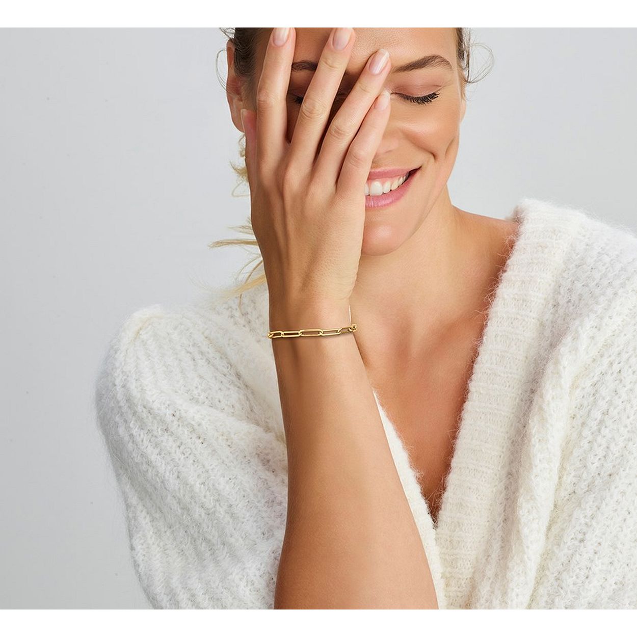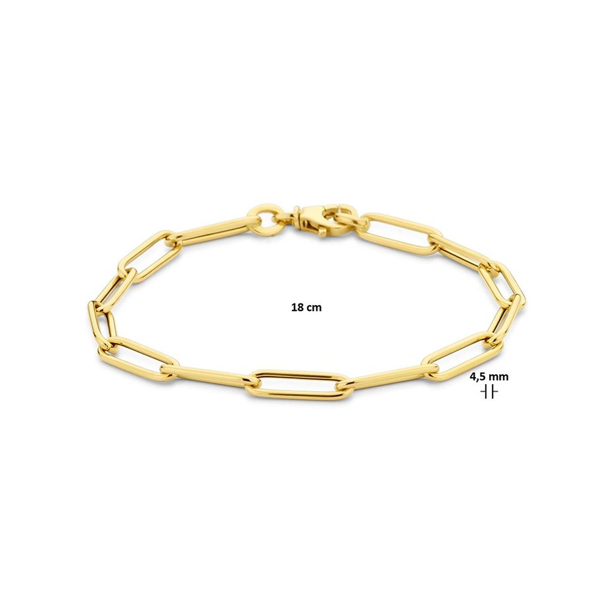 14k Geelgouden armband uitgevoerd met een paperclip schakel met een breedte van 4.5mm. De armband heeft een draaglengte van 18cm en een stevige karabijn sluiting.