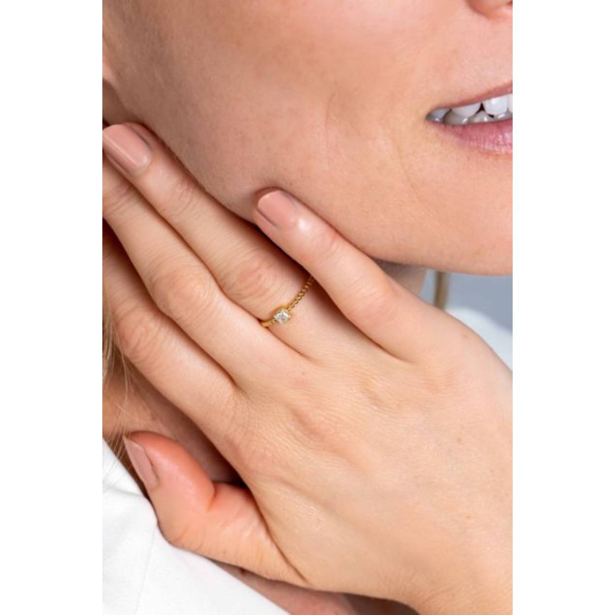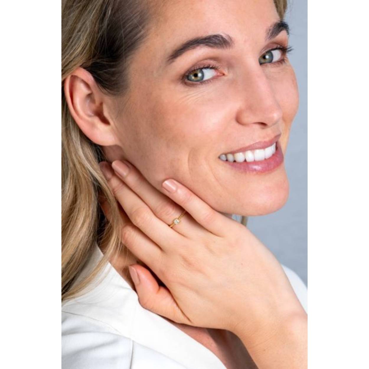 Zinzi Gold 14 karaat gouden ring met bolletjes scheen en bezet met een ronde witte zirkonia in vierkante zetting van 3,5mm. Vervaardigd van geheel 14 karaat goud (585).