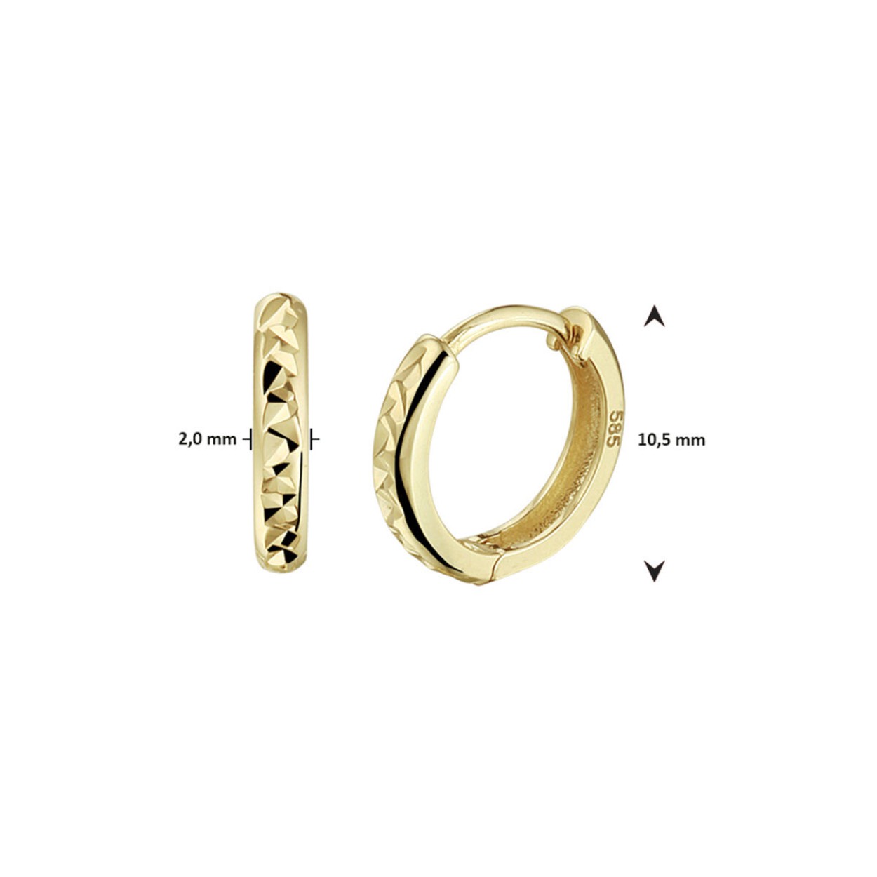 14k Geelgouden gediamanteerde klapoorringen. De oorringen hebben een afmeting van 10.5x2mm.