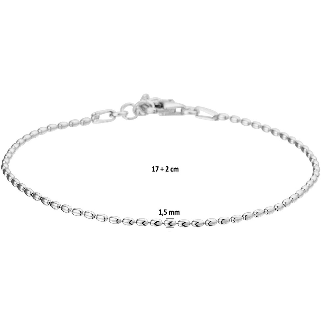 Gerhodineerd zilveren 1.5mm bolletjes armband met een lengte van 17cm met een extensie van 2cm. De armband is uitgevoerd met een stevige karabijn sluiting en is te combineren met bijpassende sieraden uit onze collectie.