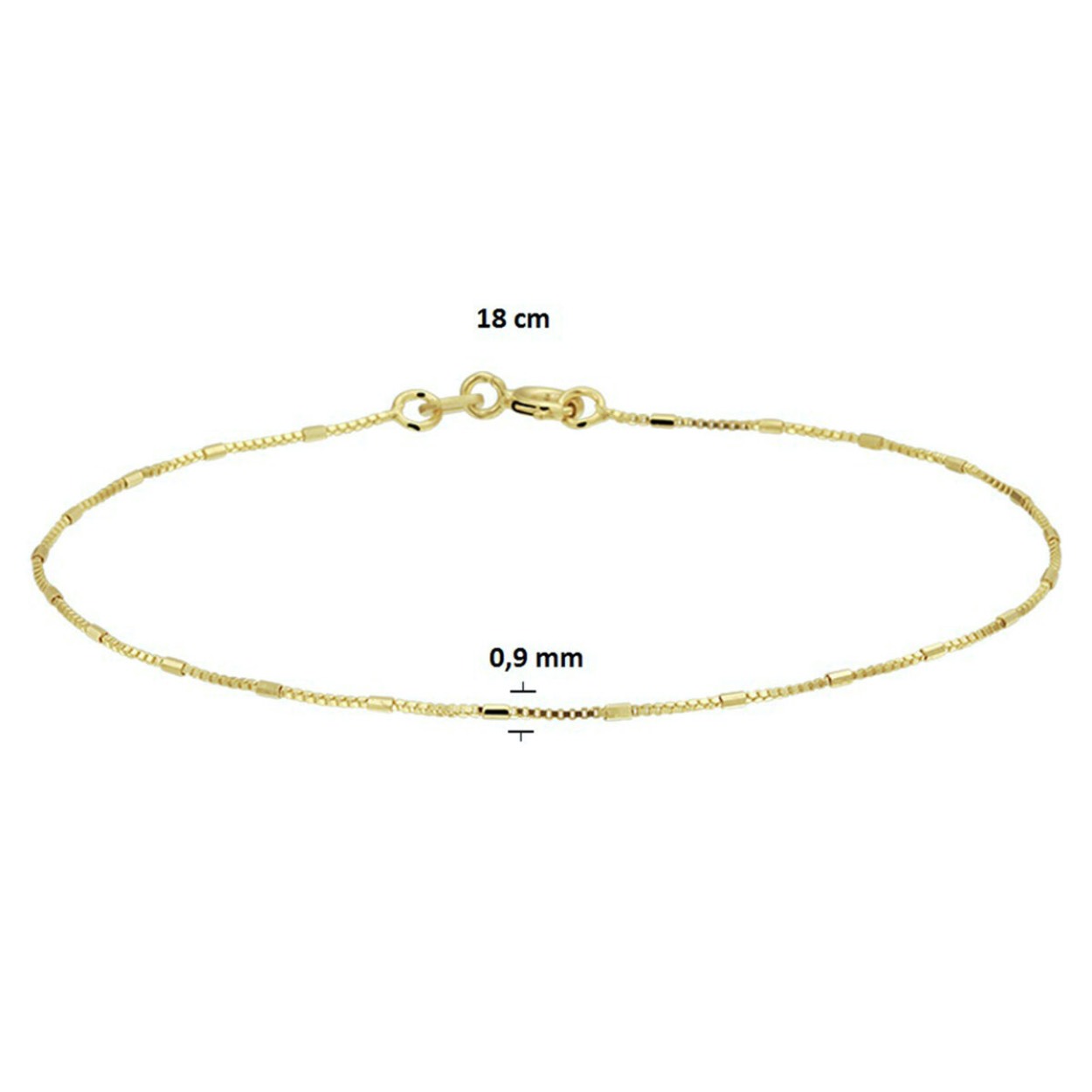 14 Karaat geelgouden armband met een venetiaanse schakel venetiaanse. De armband heeft een schakelbreedte van 0.9mm, uitgevoerd met staafjes en veerring sluiting. De armband is te combineren met bijpassend collier uit onze collectie.
