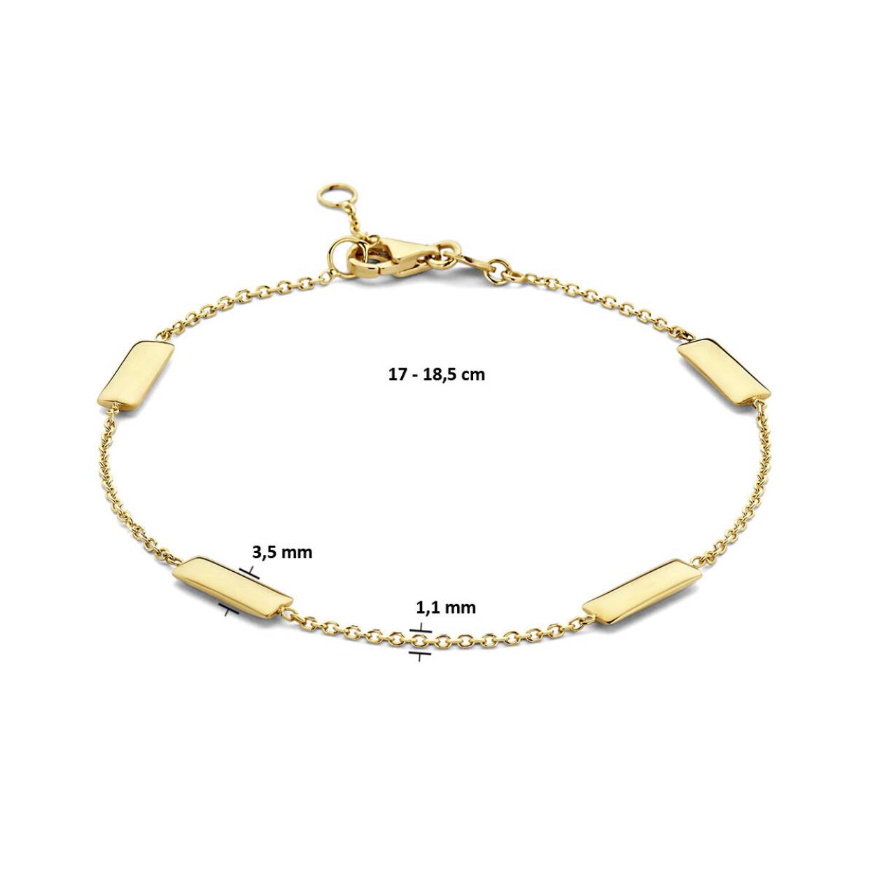 14k Geelgouden armband uitgevoerd met een karabijnsluiting. De armband heeft een draaglengte van 17 en 18.5cm. De schakelbreedte is 1.1mm.