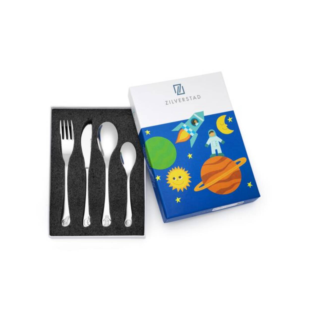 Wie droomt er niet van om astronaut te worden? Met dit kinderbestekje komt deze droom een stap dichterbij. De bestekdelen zijn voorzien van een astronaut, raket, zon en maan. Bestek Astronaut is gemaakt van 18/10 roestvrij staal en kan in de vaatwasser gereinigd worden. Voorzien van een luxe, gekleurde geschenkverpakking. De bestekonderdelen kunnen worden gegraveerd. Leuk als geboorte-, doop- of verjaardagscadeau. U kunt één naam gratis laten graveren. De vork en de lepels zullen aan de achterzijde gegraveerd worden. De gravure kunt u vermelden in het opmerkingenveld tijdens het bestelproces. Gegraveerde artikelen kunnen niet worden geruild. Afmeting: vork: 16 cm, mes: 17 cm, eetlepel: 16 cm, dessertlepel: 13 cm.