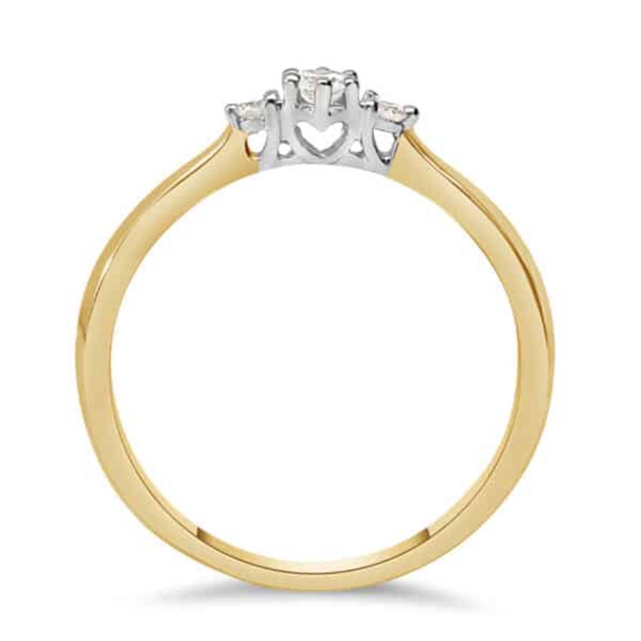 Pas diamonds bi color gouden ring met diamant. In de witgouden zetting zijn drie briljanten geplaatst. De afmetingen, 1x 0,10crt en 2x 0,04crt GSI.