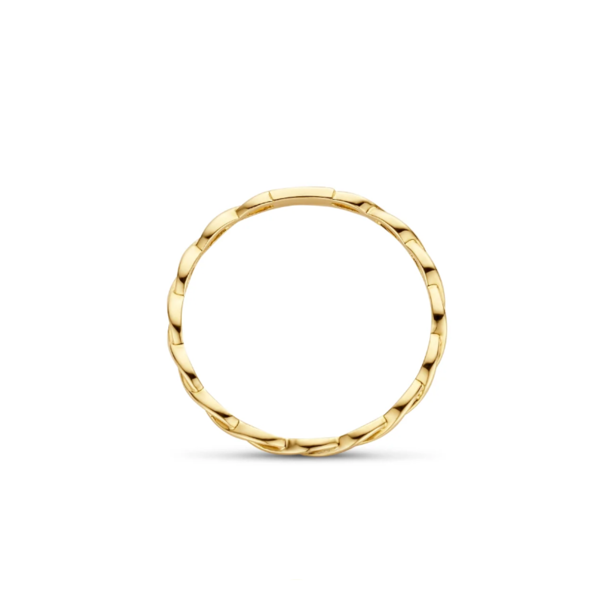 Deze 14k geelgouden ring heeft een bijzonder en modern vlechtontwerp. De ring heeft een doorsnede van 2 mm en staat prachtig in combinatie met andere wit- of geelgouden (aanschuif)ringen uit onze collectie.