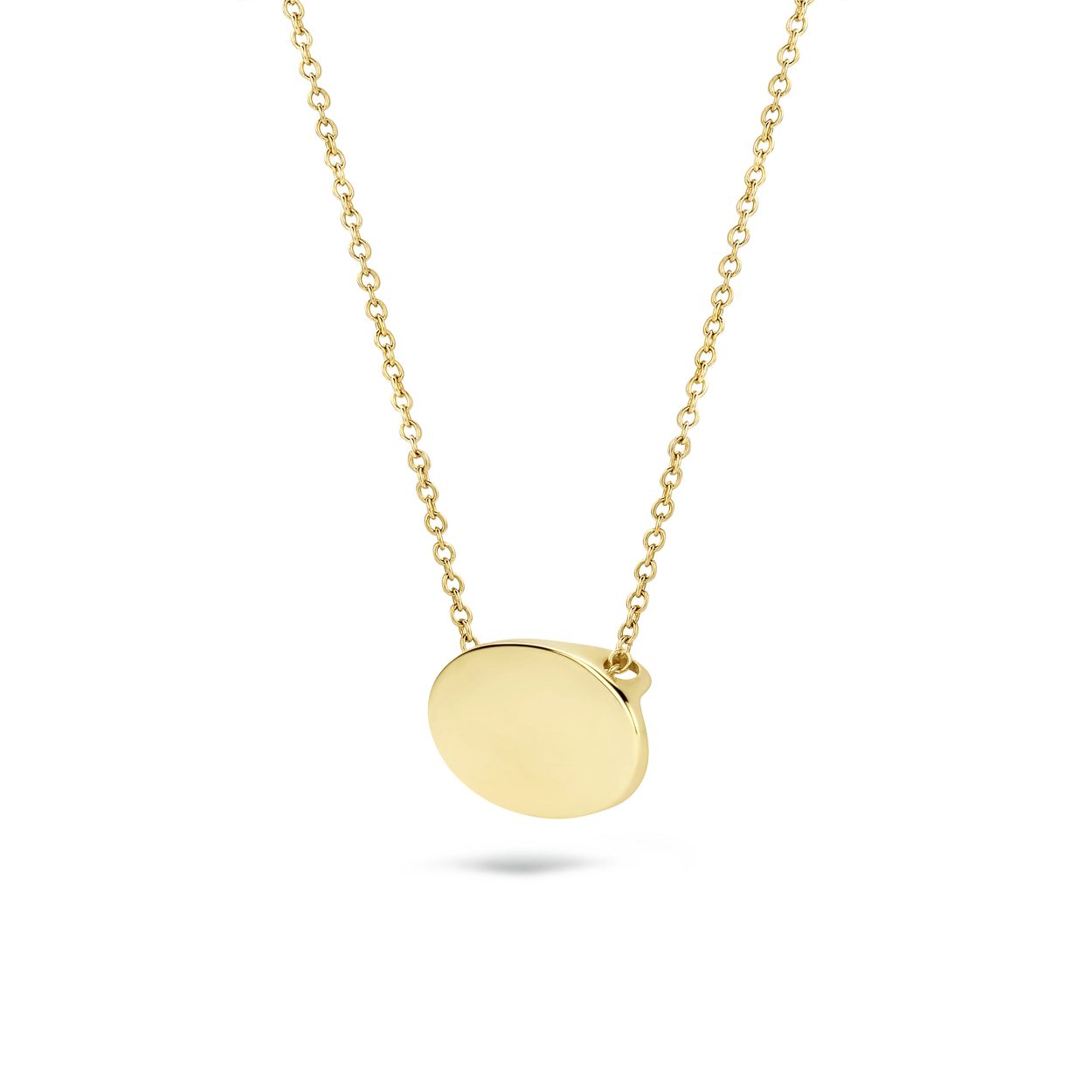 De ovalen hanger aan dit collier van 14k geelgoud kan worden gegraveerd met bijvoorbeeld een naam. Dat maakt dit stijlvolle sieraad een prachtig cadeau voor een bijzondere gelegenheid. De doorsnede van de hanger is 0,9 mm en de lengte van het collier is 42 cm.