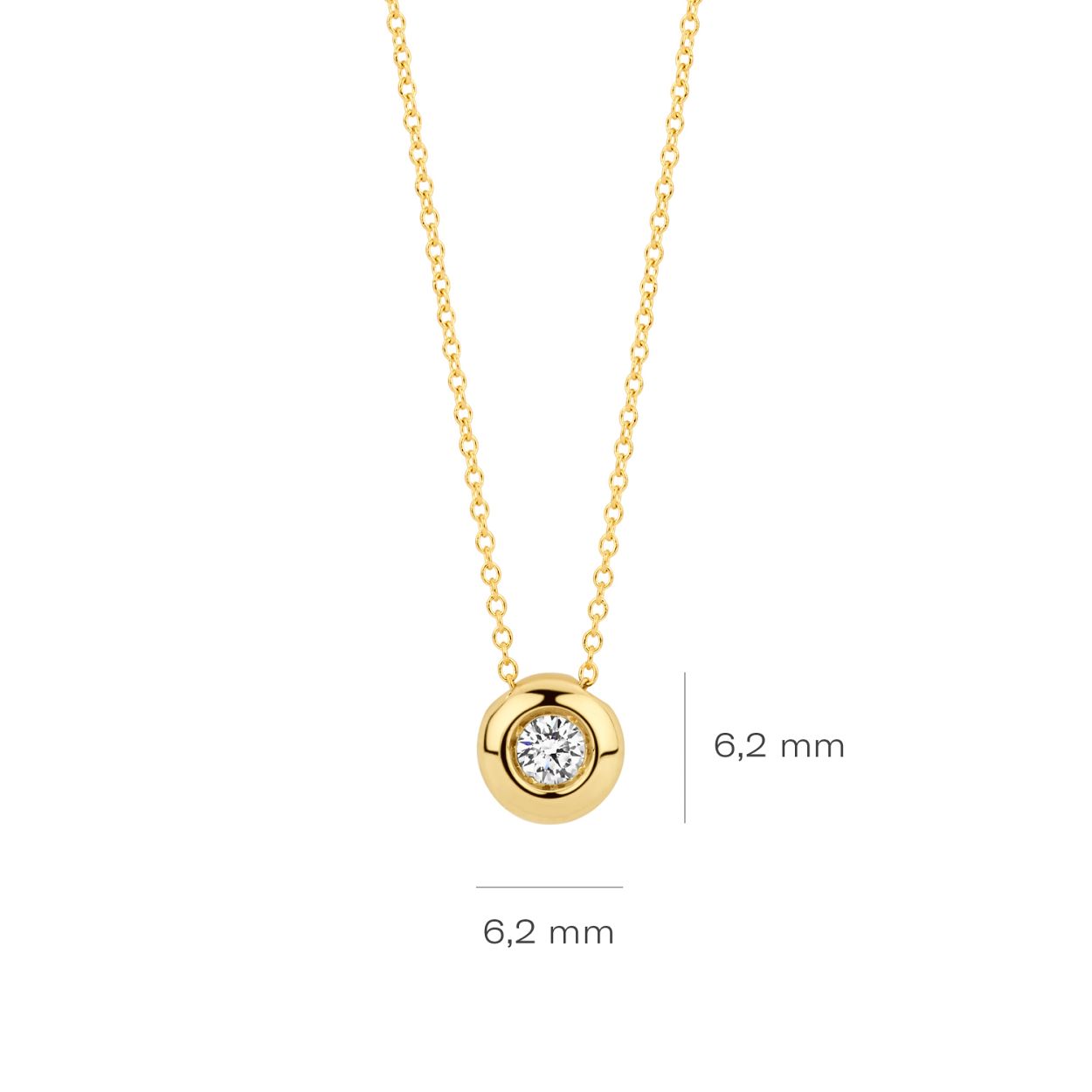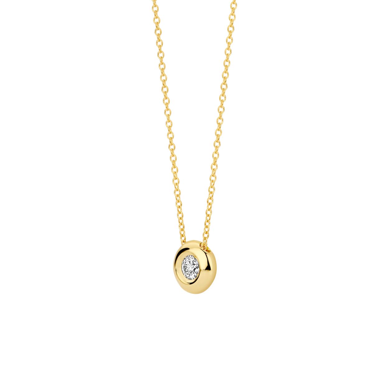Gemaakt van 14k gecertificeerd gerecycled goud met lab grown diamant. Dit collier is uitgevoerd in glanzend gepolijst goud en is voorzien van een briljant geslepen Lab grown Diamant van 0,10 ct met een doorsnede van 6,2 mm. Deze ketting met geelgouden hanger heeft iets extra’s; de geelgouden ronde hanger is bezet met een stralende lab grown diamant. Voor een extra stralend effect is het collier stijlvol te combineren met een Lab Diamonds ring of oorbellen LG7004Y.