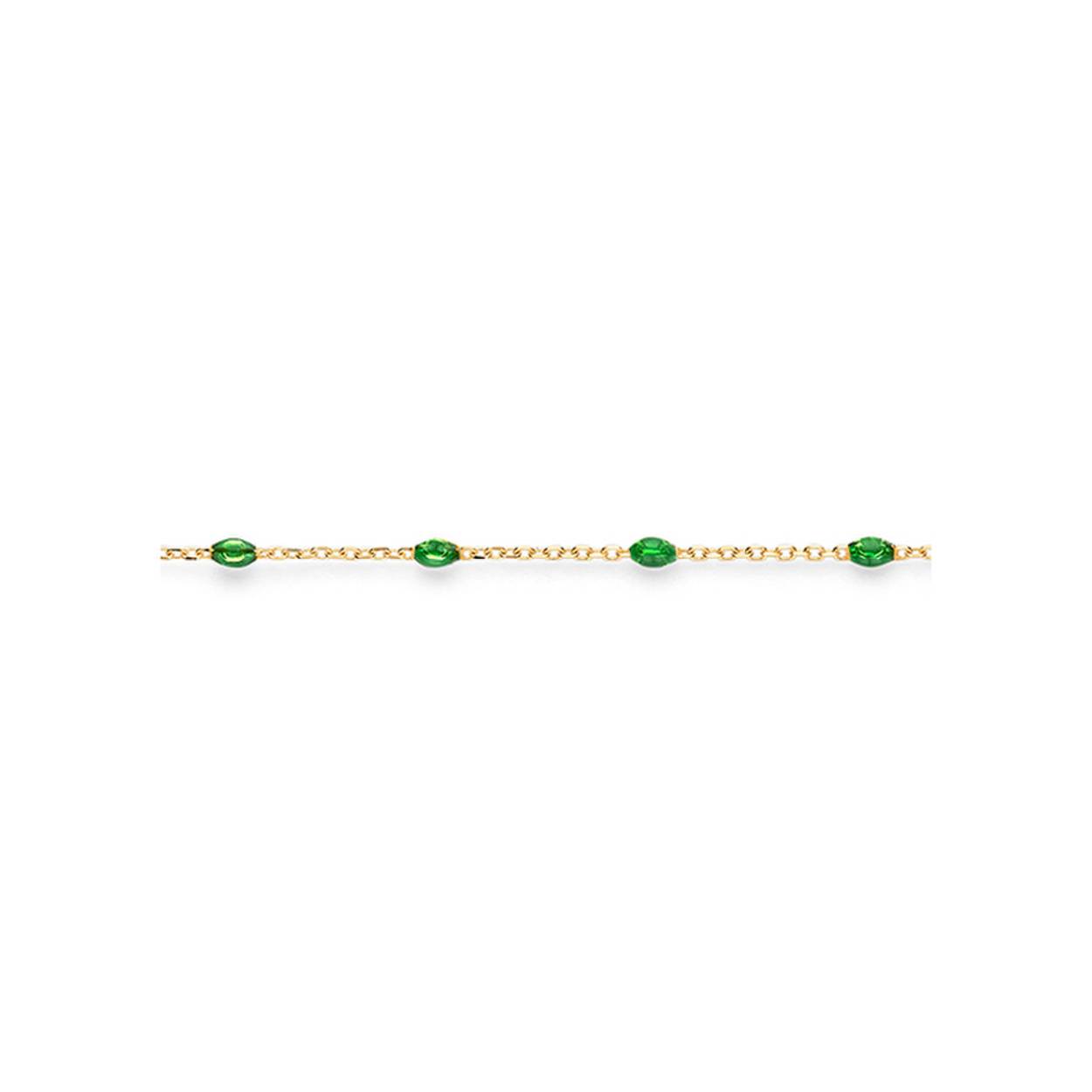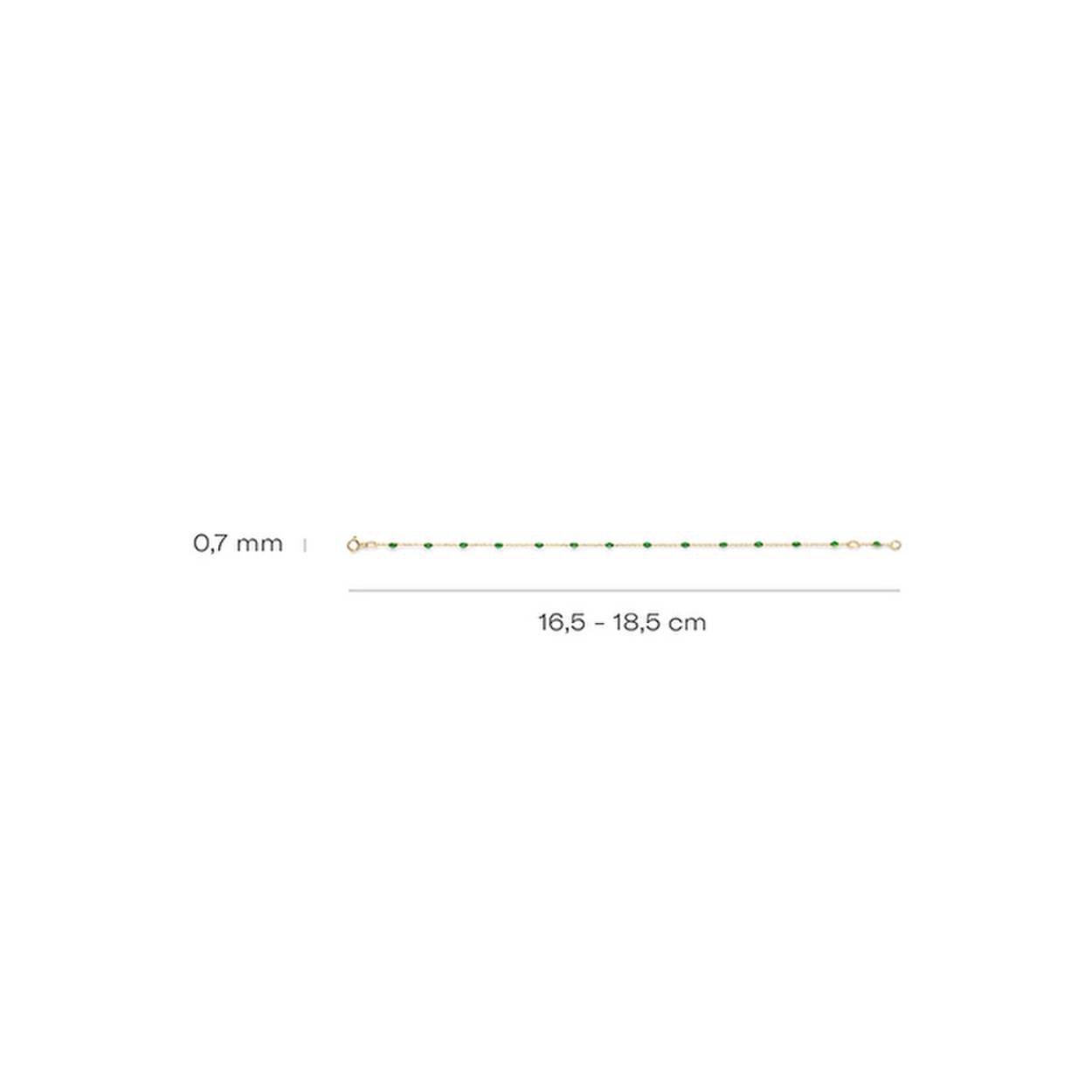 De heldergroene resin stenen maken deze 14k geelgouden armband tot een echte eyecatcher. De band is 18 cm lang en heeft een veerringsluiting. Heel mooi op zichzelf of met andere sieraden uit onze collectie, bijvoorbeeld collier 3162YRG.