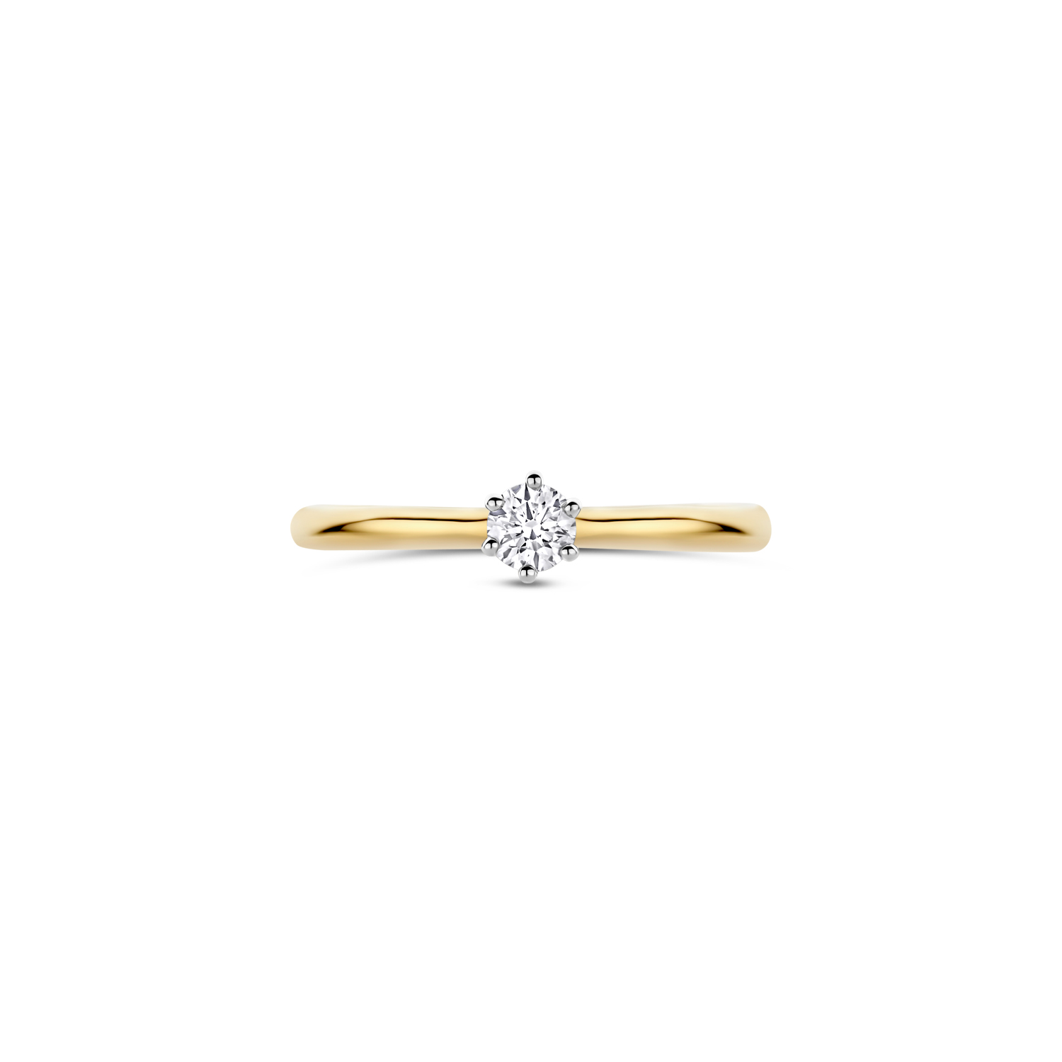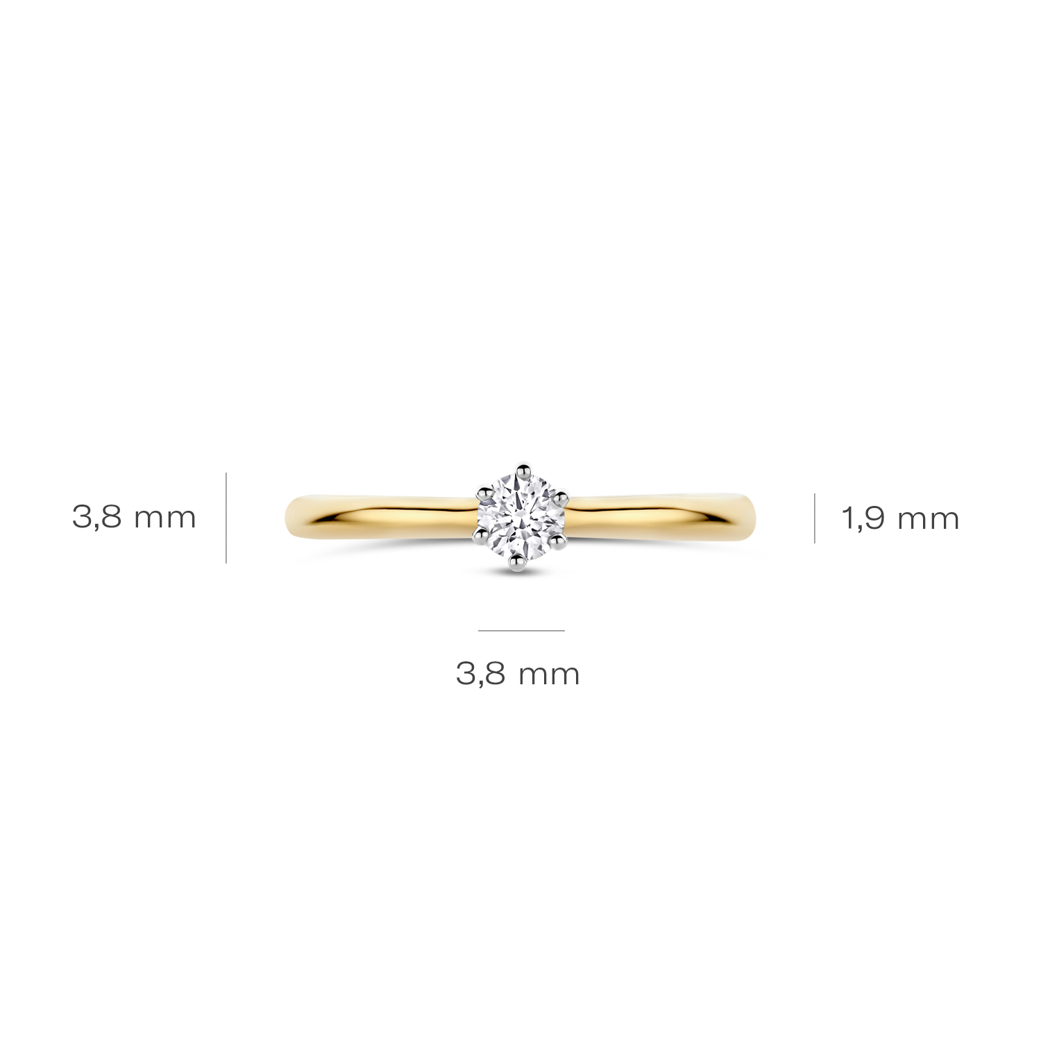 Deze ring van 14k geelgoud met een lab-diamond in witgouden chaton-zetting straalt eenvoud en elegantie uit. Het karaatgewicht van de diamant is 0,20 en de doorsnede van de band is 1,9 mm. Draag deze ring op zichzelf of combineer hem met andere ringen uit onze collectie.