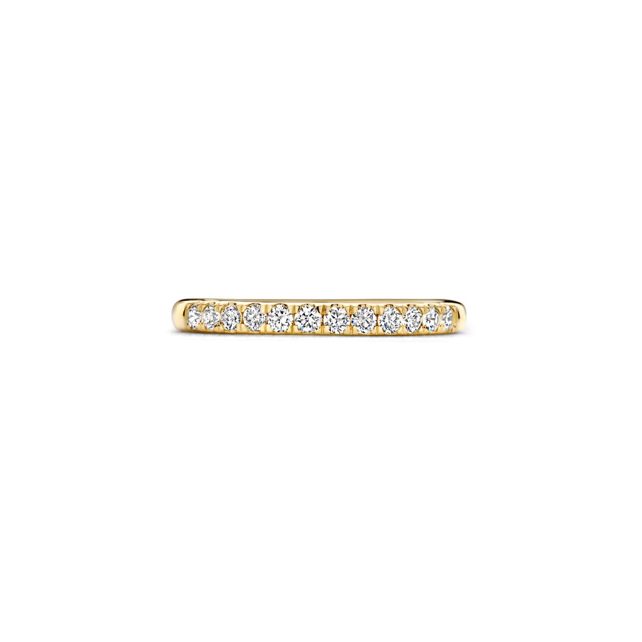 Gemaakt van gecertificeerd gerecycled goud met een lab grown diamant. Deze 14k geelgouden Lab Diamonds ring is uitgevoerd in glanzend gepolijst geel goud en voorzien van 12 briljant geslepen lab grown diamanten, gezet in een pavé zetting. Het gewicht van de lab grown diamanten in deze ring is totaal 0.31ct. De ring heeft een band met een diameter van Ø 2,2 mm en is perfect te combineren met andere gouden sieraden. Draag je hem solitair, dan is deze slanke ring een elegante blikvanger.