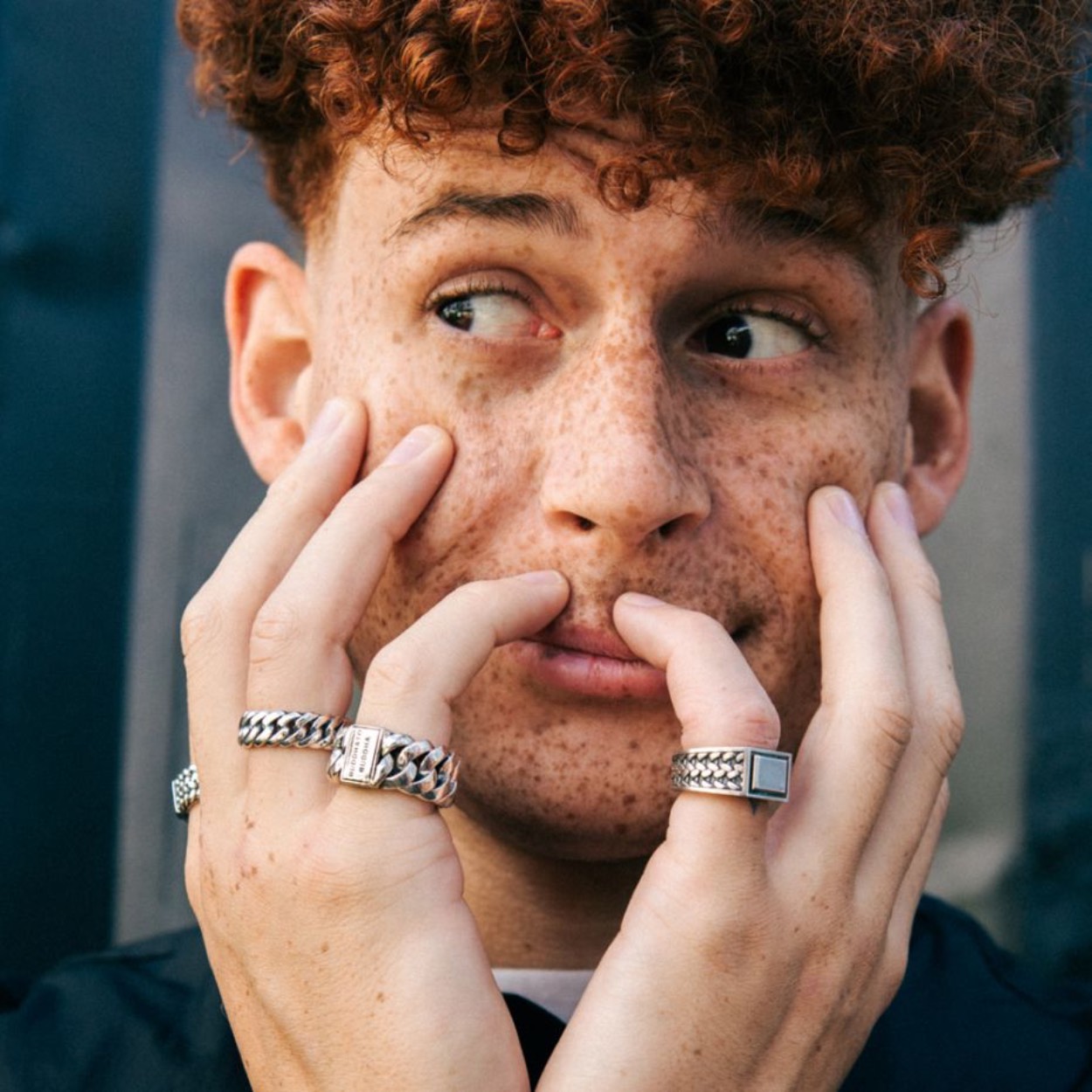De Chain Ring: een echte best-seller gebaseerd op de Chain schakel. Handgemaakt en tijdloos, de ring van sterling zilver kan gecombineerd worden met andere Chain sieraden, bijvoorbeeld de Chain armband of oorbellen. De Chain Ring is breder dan de Chain Small Ring.