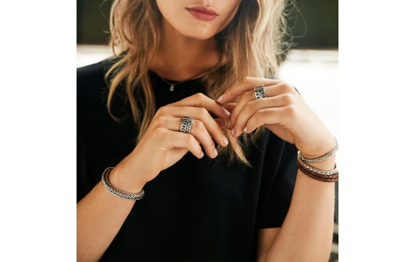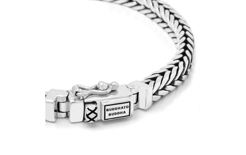 Mogelijk het meest delicate stuk uit de Heritage-collectie. Deze armband is opmerkelijk sterk en al een icoon op zich. Stevig, maar tegelijkertijd subtiel en fantastisch gedetailleerd. De vierkante vorm maakt de armband onverwacht recht en sterk. De zilveren armband kan perfect worden gecombineerd met andere Buddha to Buddha-sieraden. De Barbara XS-armband is kleiner dan de Barbara-armband.
