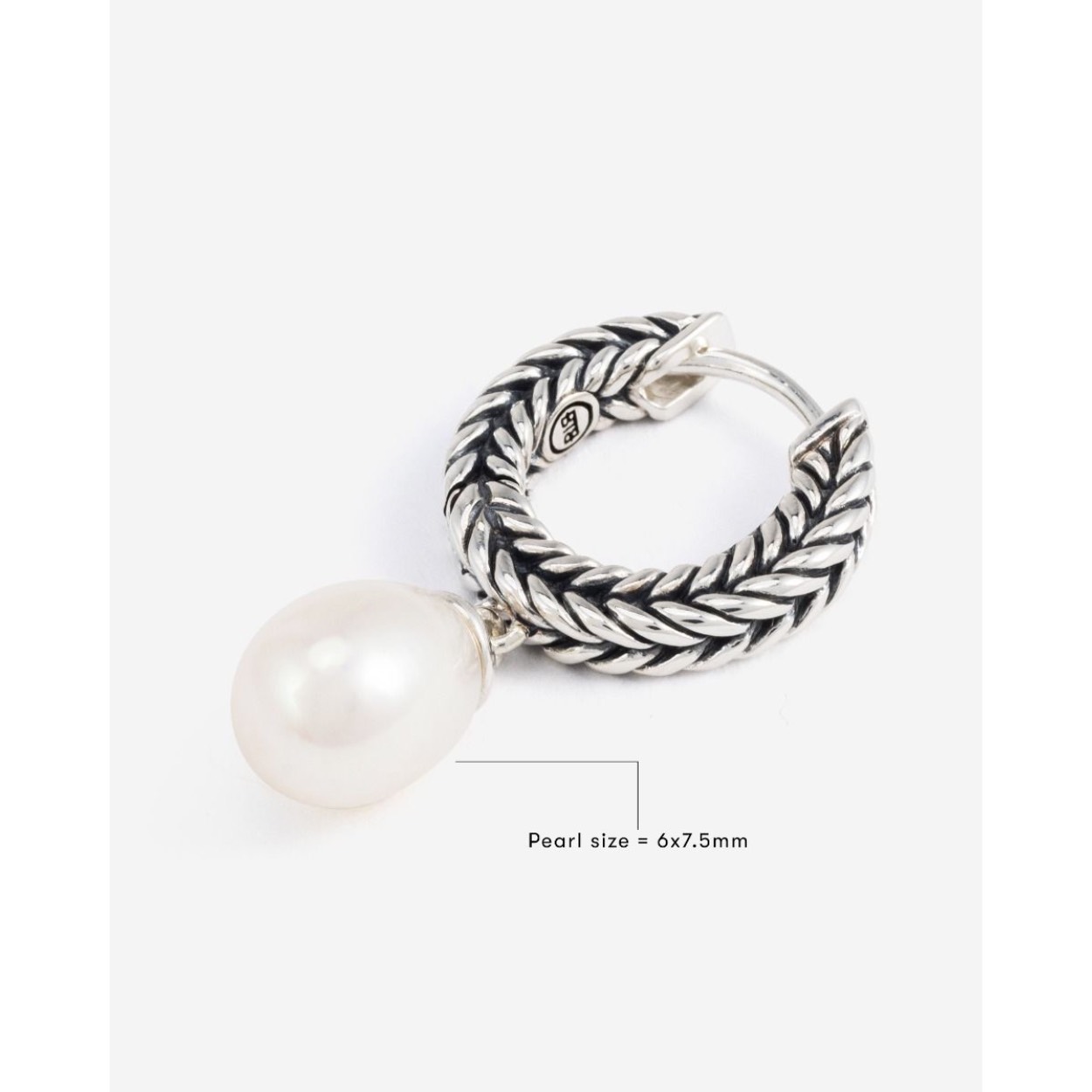 De Hoops Barbara Parel combineren tijdloze schoonheid met een gedurfd ontwerp. Met natuurlijke witte ovale zoetwaterparels voegen deze oorbellen een vleugje luxe toe aan de opvallende zilveren afwerking. De textuur op de oorbellen is geïnspireerd op het iconische Barbara-weefpatroon en creëert een boeiend contrast tussen het gedetailleerde ontwerp en de gladde, stralende parels. Gemaakt van hoogwaardig gerecycled 925 sterling zilver, bieden deze oorbellen zowel verfijning als duurzaamheid. Vier de schoonheid van contrast en vakmanschap met de Barbara Pearl Zilver Hoops, een perfecte mix van natuurlijke elegantie en iconisch design.