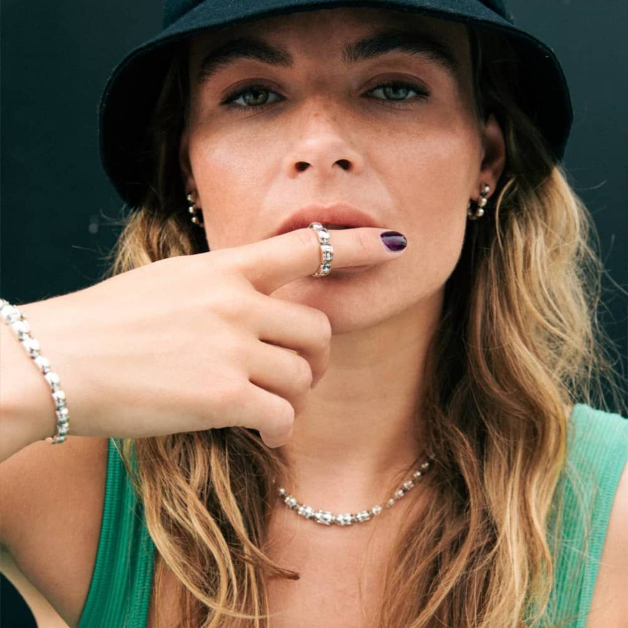 De iconische Batul schakel, met een vernieuwend design. Een tijdloze klassieker met onze kenmerkende licht aangebrachte zilveren oxidatie look. Deze Refined Batul collectie bestaat uit een ketting, armband, ring en oorbellen.