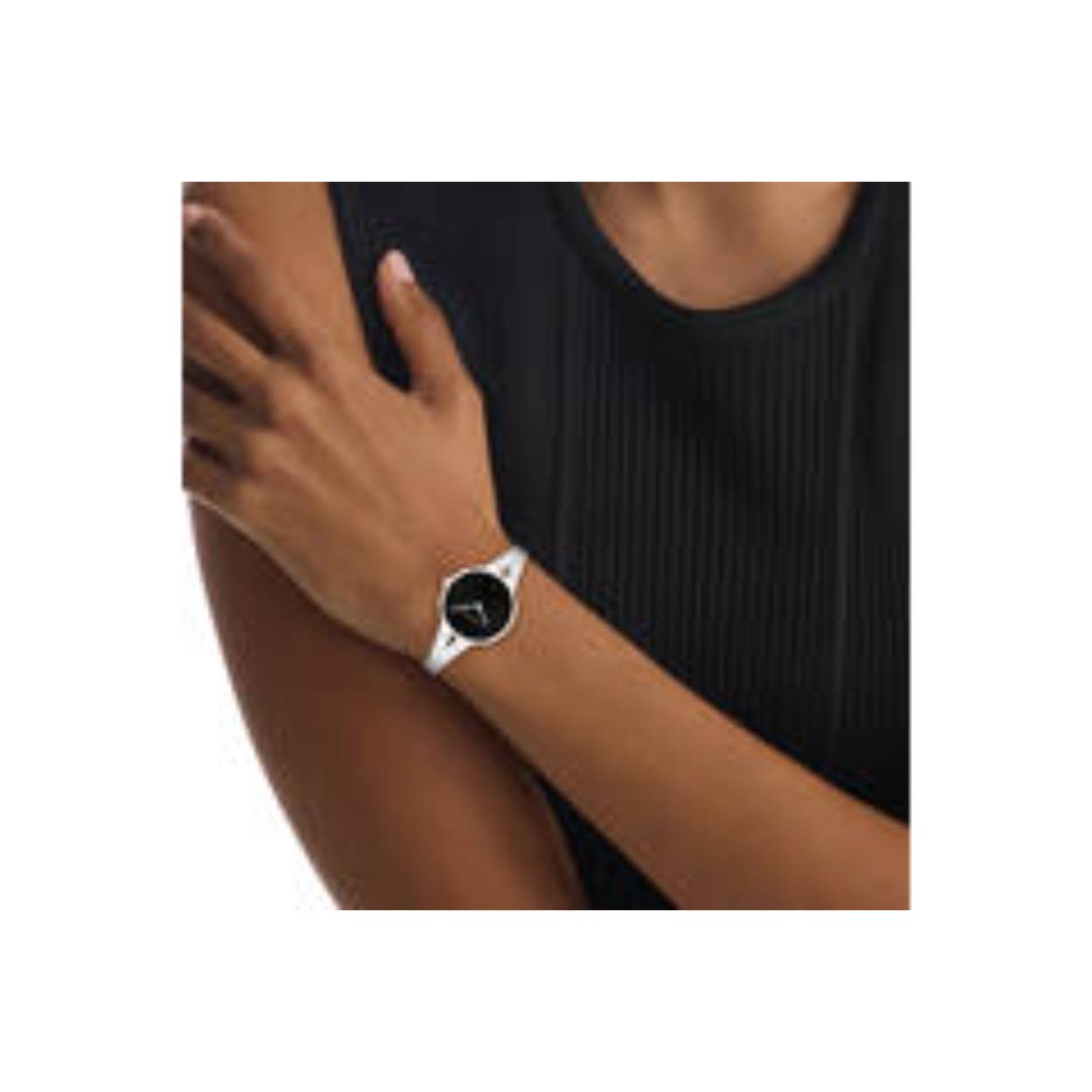 Dit Calvin Klein dameshorloge met nr CK25100026 is een chique en minimalistisch ontwerp. De stijlvolle ronde stalen kast heeft een gladde bezel en een zwarte wijzerplaat met hele fijne uursaanduiding. Aan het horloge zit een speciaal gevormde spangband die aan de onderkant overloopt in schakels. Het sierlijke horloge heeft een mineraalglas, een doorsnee van 30mm en is 3ATM.