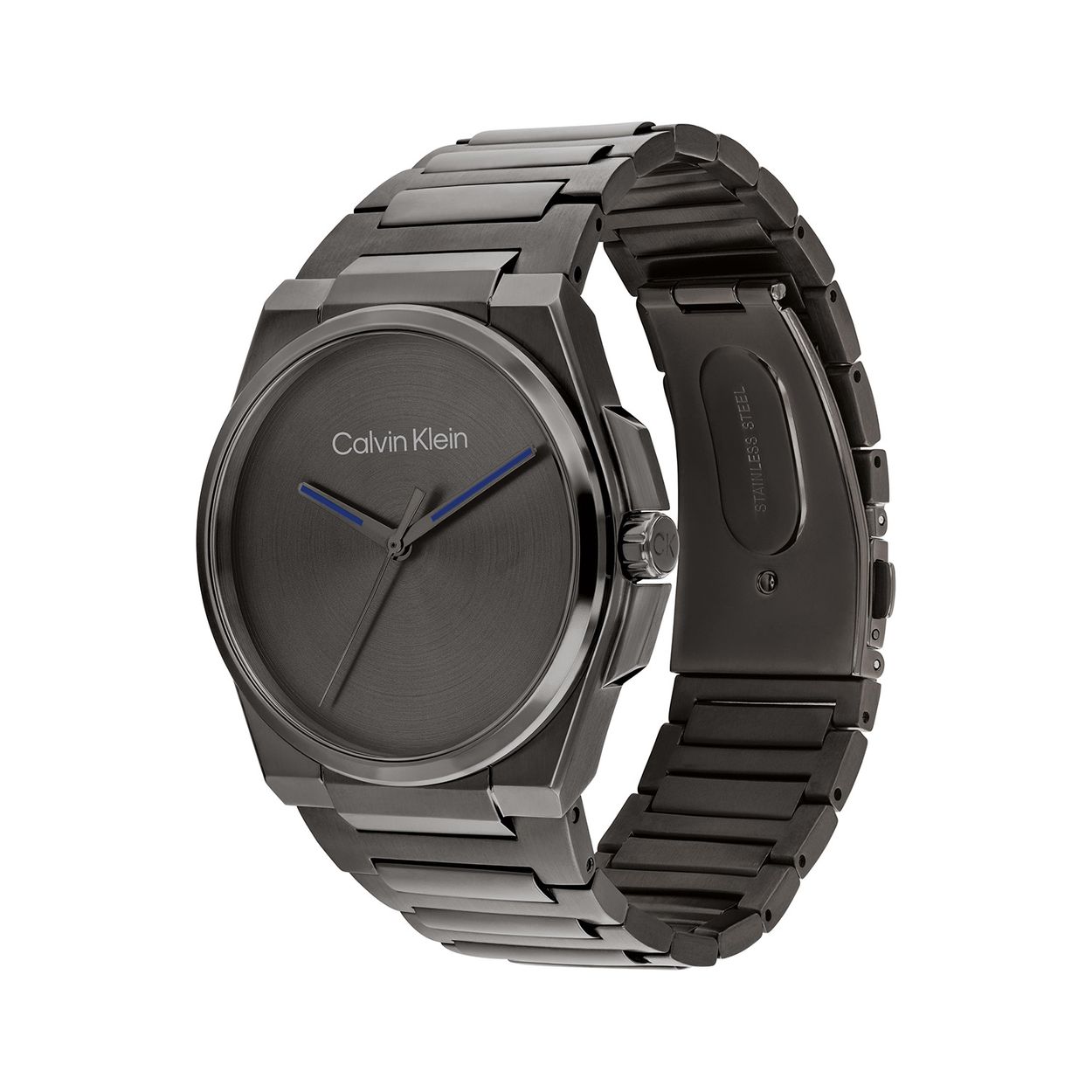 Dit Calvin Klein herenhorloge met nr CK25200458 is een gestyled ontwerp. De mooi gevormde stalen grijze kast heeft een gladde bezel en een grijze sunray wijzerplaat met fijne wijzers als uursaanduiding. Aan het horloge zit een fijne stalen grijze schakel band met vouwluiting. Het horloge heeft een mineraalglas, een doorsnee van 41mm en is 3ATM.