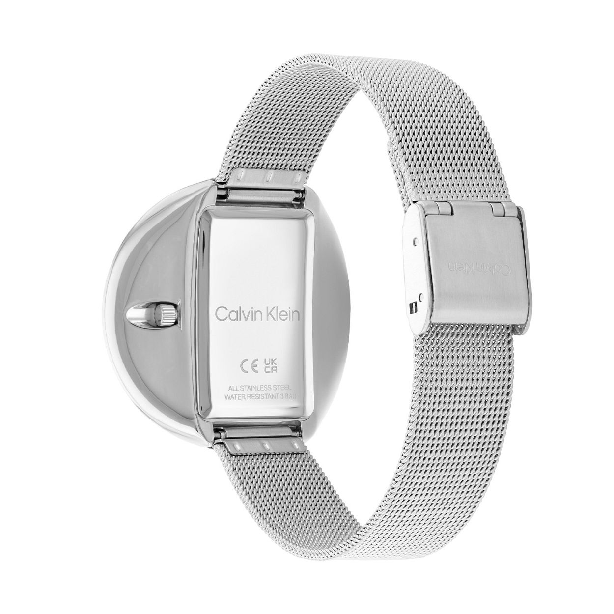 Dit Calvin Klein dameshorloge met nr CK25200016 heeft een strak en minimalistisch ontwerp. De stijlvolle ronde glimmende stalen kast heeft een rechthoekige vorm uurwerk en een zilverkleurige wijzerplaat waarop fijne wijzers zichtbaar zijn. Direct aan de zilverkleurige kast zit een zilverkleurige milanese band. Het stijlvolle horloge heeft een mineraalglas, een doorsnee van 40mm en is 3 ATM.