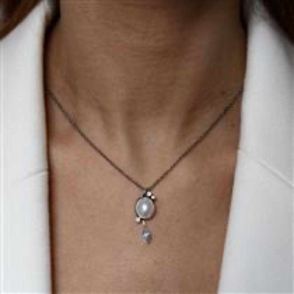Deze sterling zilveren ketting bevat een mooie witte parel van 10 x 8 mm en twee 1,5 mm witte topaas. Onder de parel hangt een 6 x 3 mm blauwe topaas. De ketting is te dragen op 42 en 45 cm.Rabinovich sieraden kenmerken zich door de prachtige eenvoudige en stijlvolle ontwerpen. Rabinovich is een klassiek en persoonlijk Deens sieradenmerk en onderscheidt zich door gebruik te maken van echte edelstenen in combinatie met zilver, verguld zilver en zilver met gouden elementen. Daarbij wordt er gebruik gemaakt van strakke en ronde vormen en verschillende kleuren parels en stenen. Het zilver wordt op dusdanige manieren gebruikt dat het niet alleen de bekende glanzende zilverkleur heeft, er wordt ook veelvuldig gebruik gemaakt van geoxideerd zilver wat de prachtige vaak wat wat meer matte zwart zilveren kleur oplevert. De passie van Rabinovich? Dromen vastleggen, gedachten te grijpen en beide omzetten in mooie en vrouwelijke sieraden. Let op: Deze zuivere, natuurlijke materialen zijn volstrekt uniek. Ze verschillen in kleur en hebben unieke insluitsels en kenmerken waaraan hun ouderdom en natuurlijke schoonheid te zien zijn.