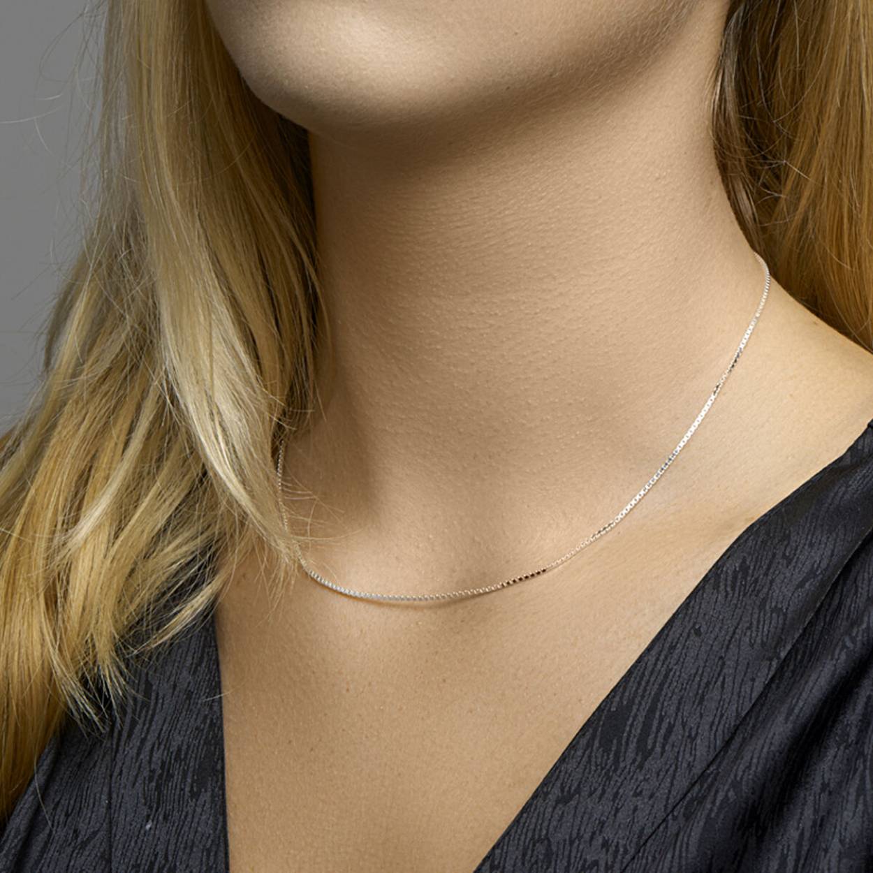 Zilveren collier met venetiaanse schakel. Het collier heeft een stevige karabijn sluiting.