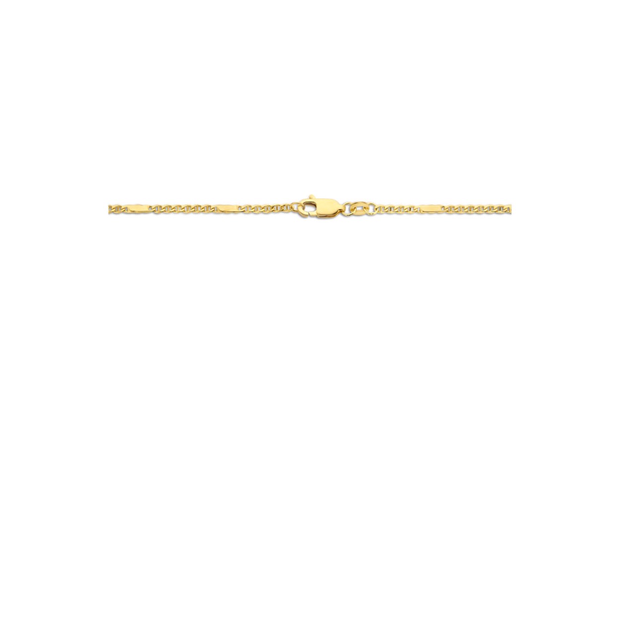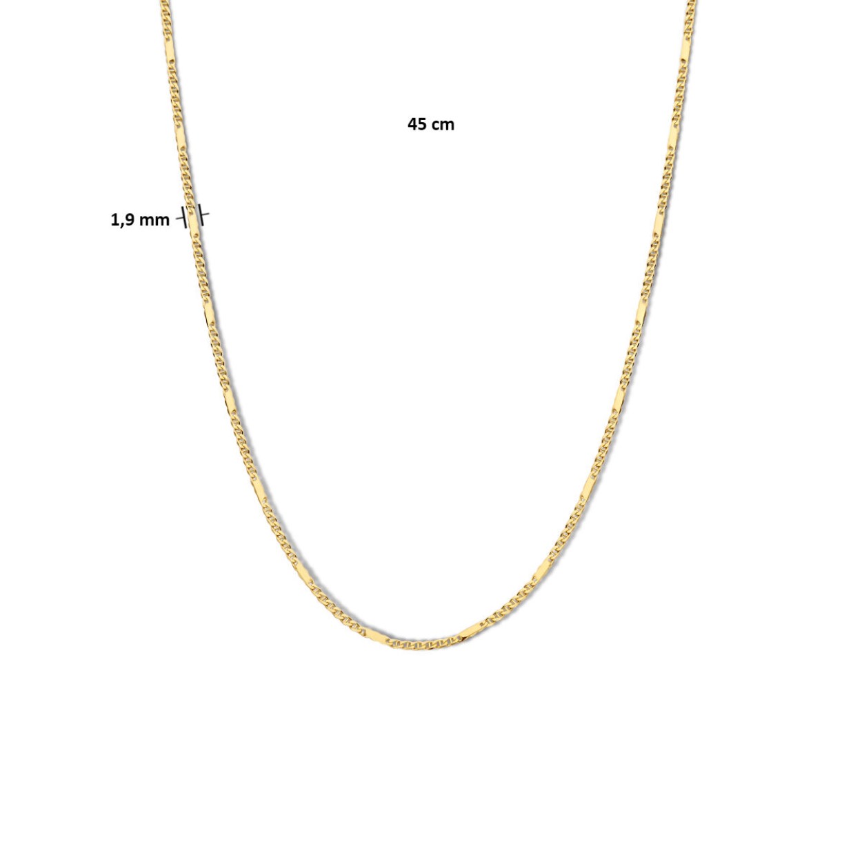 14k Geelgouden valkenoog collier. Het collier heeft een draaglengte van 45cm, een schakelbreedte van 1.9mm en een karabijn sluiting.