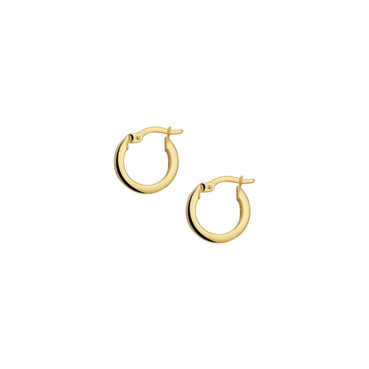 Geelgouden oorringen met een vierkante buis en een hefboom-sluiting.
