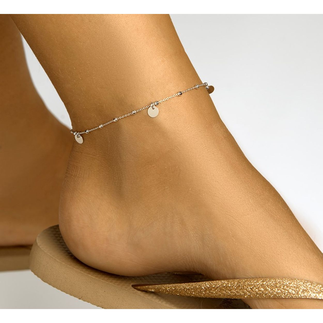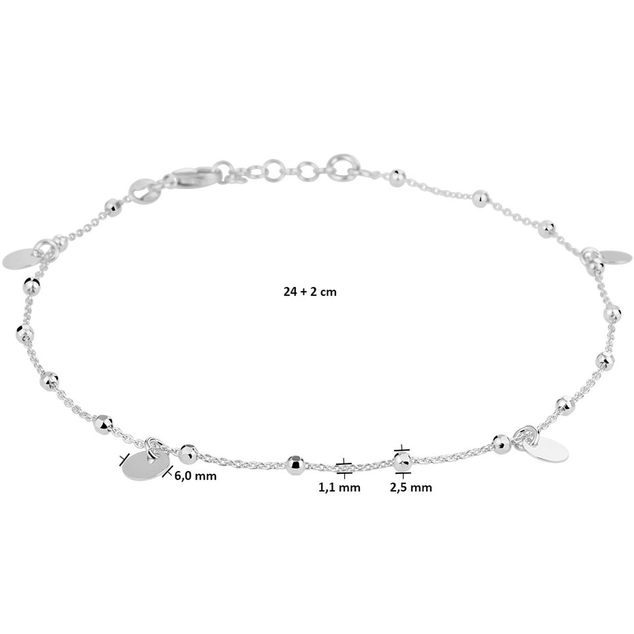 Gerhodineerd 925 zilveren enkelbandje uitgevoerd met rondjes en een stevige karabijn sluiting. Het enkelbandje heeft een draaglengte van 24cm met een extensie van 2cm. De rondjes hebben een diameter van 6mm.