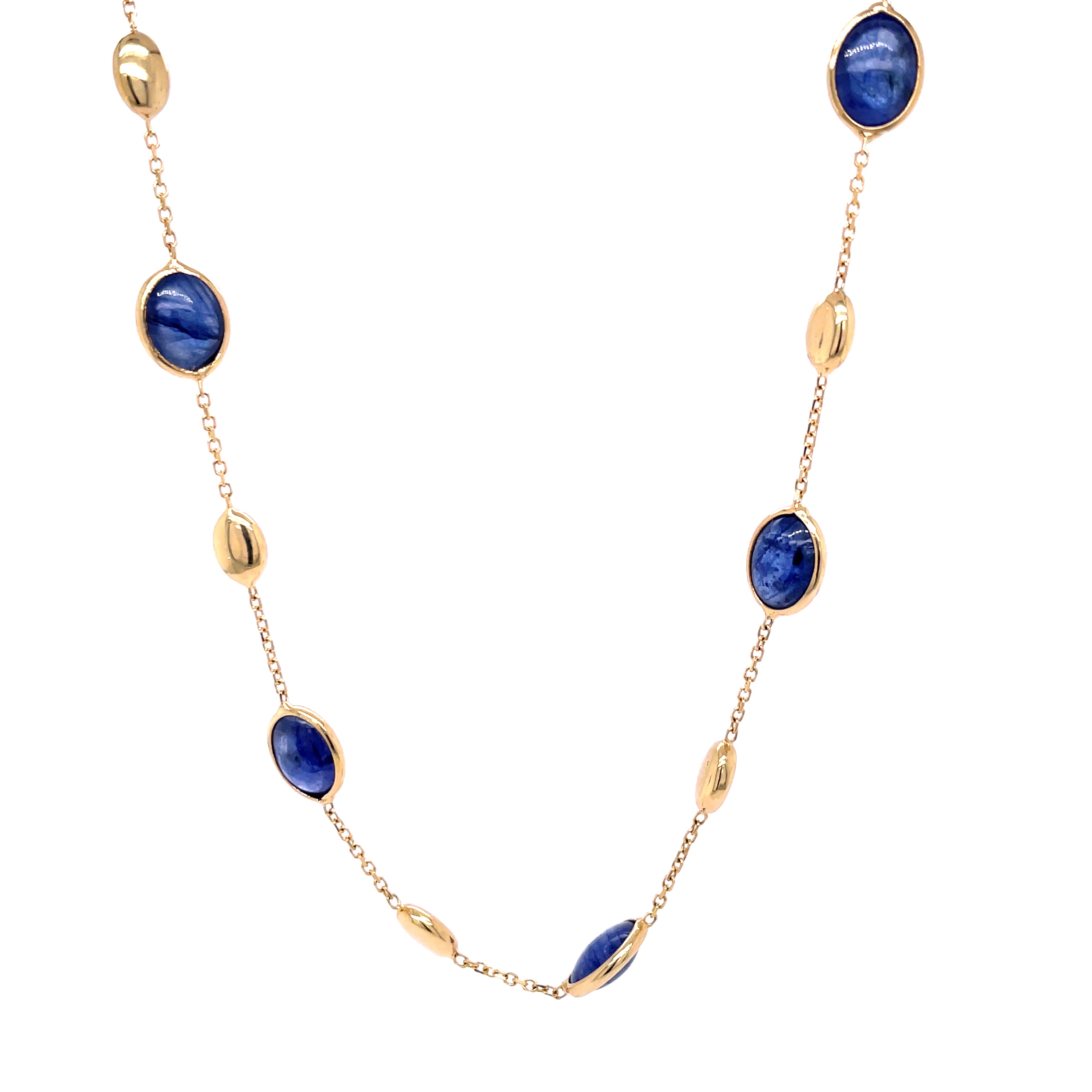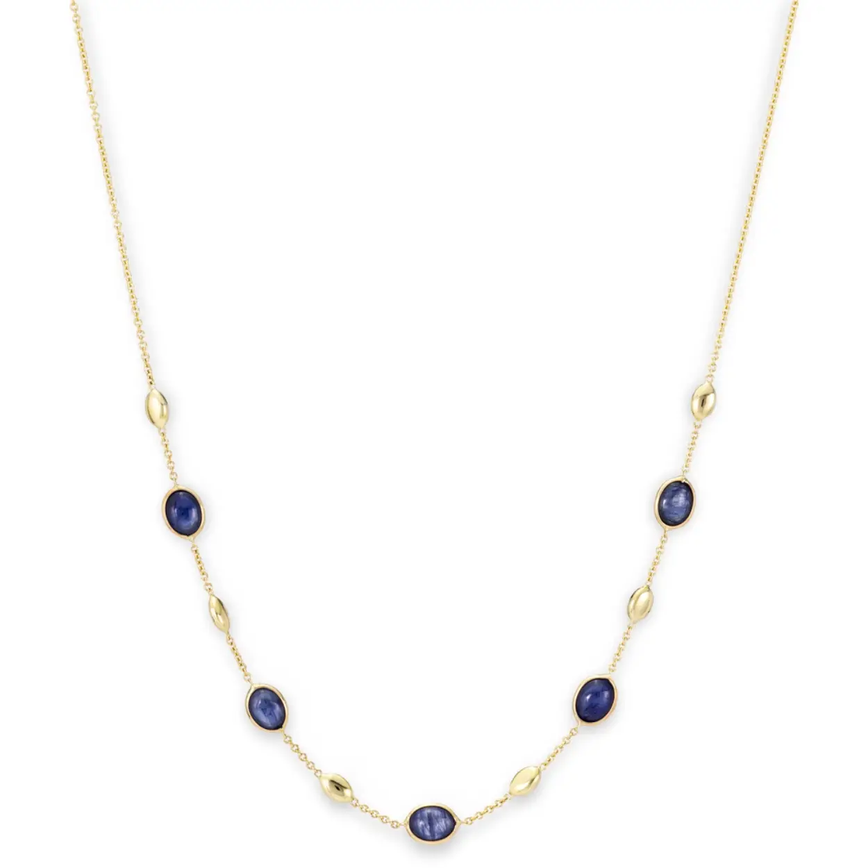 Minzario 14 karaat geelgouden collier met anker schakel en blauwe saffier