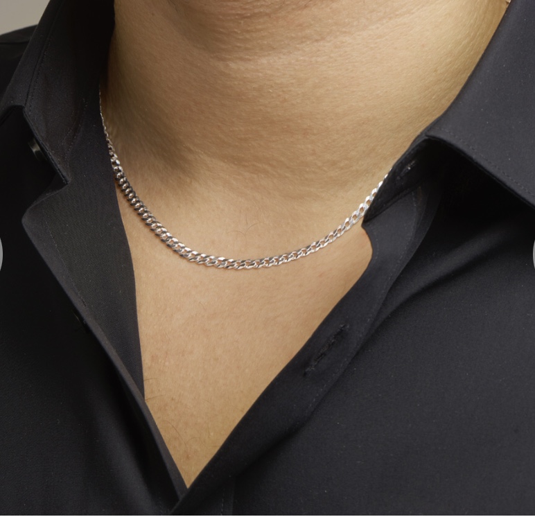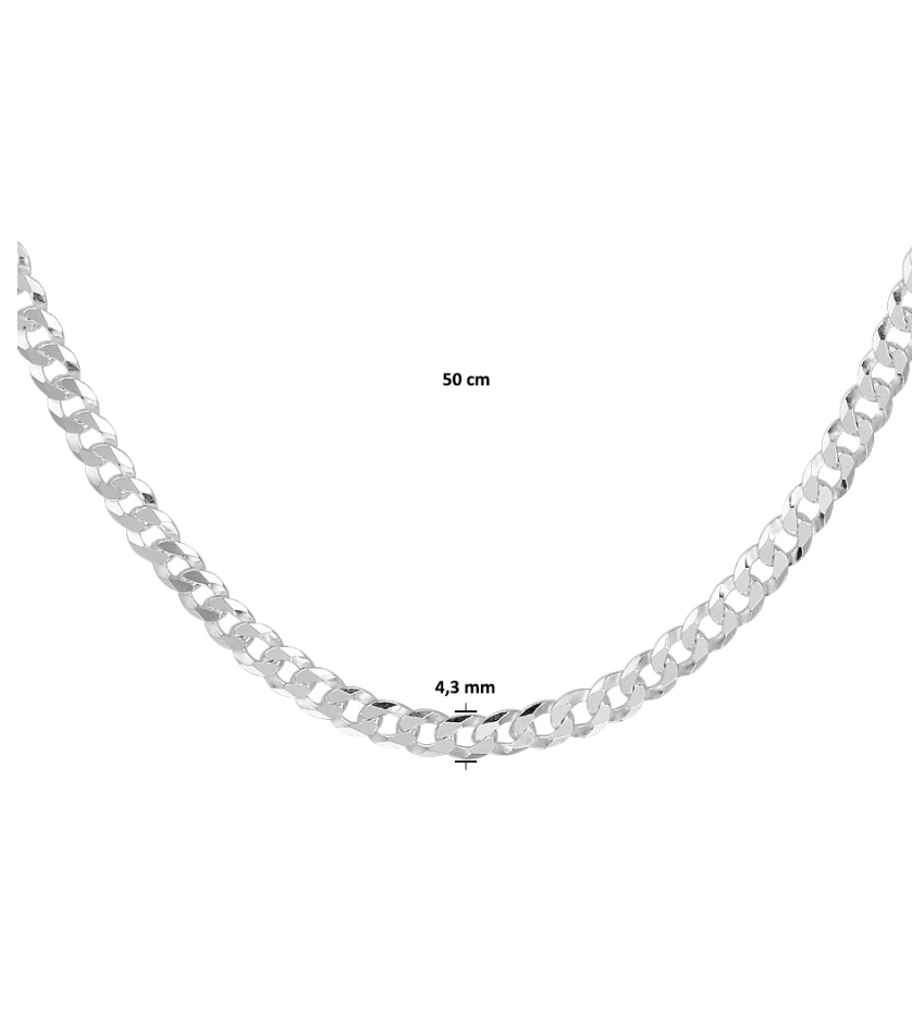 Zilver collier met gourmette schakel. Het collier heeft een breedte van 4.3mm en een lengte van 50 cm. Het collier heeft een karabijn sluiting.