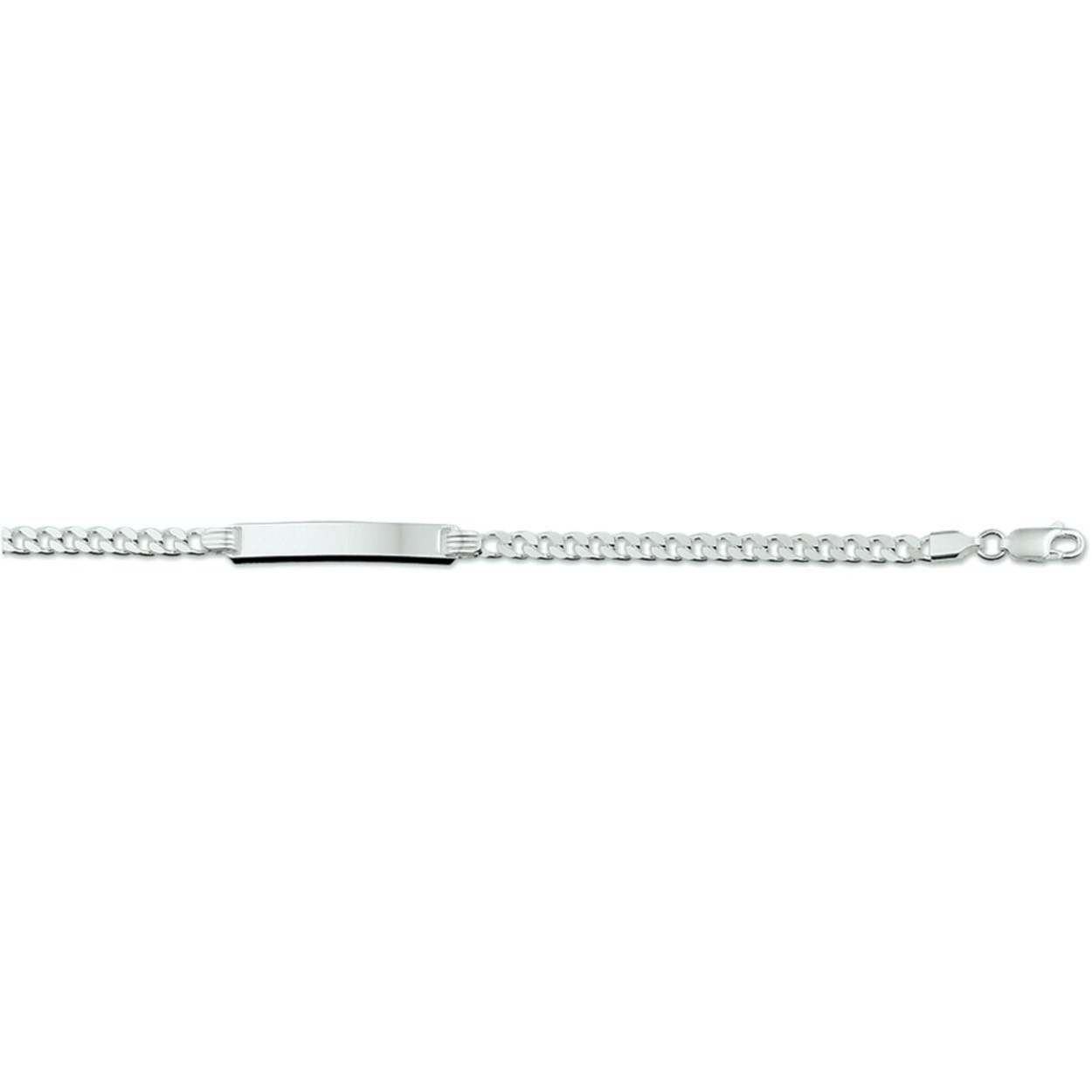 Zilveren graveerarmband met gourmette schakel. Het graveerplaatje heeft een breedte van 6 millimeter .De naamplaatarmband heeft een lengte van 19 centimeter. Deze lengte is geschikt voor volwassen dames en voor slanke jongens of heren met een slanke pols.  U kunt één naam gratis laten graveren. De gravure kunt u vermelden in het opmerkingenveld tijdens het bestelproces. Gegraveerde artikelen kunnen niet worden geruild.