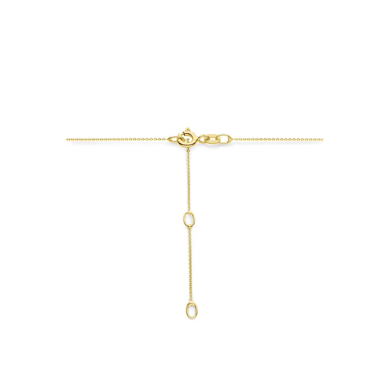 14 Karaat bi-color geel- en witgouden hanger uitgevoerd met 0.03crt H Si2 diamant in een 4-poots zetting. De hanger heeft een totale hoogte van 15mm. Draag de hanger samen met de bijpassende ring en oorsieraden.