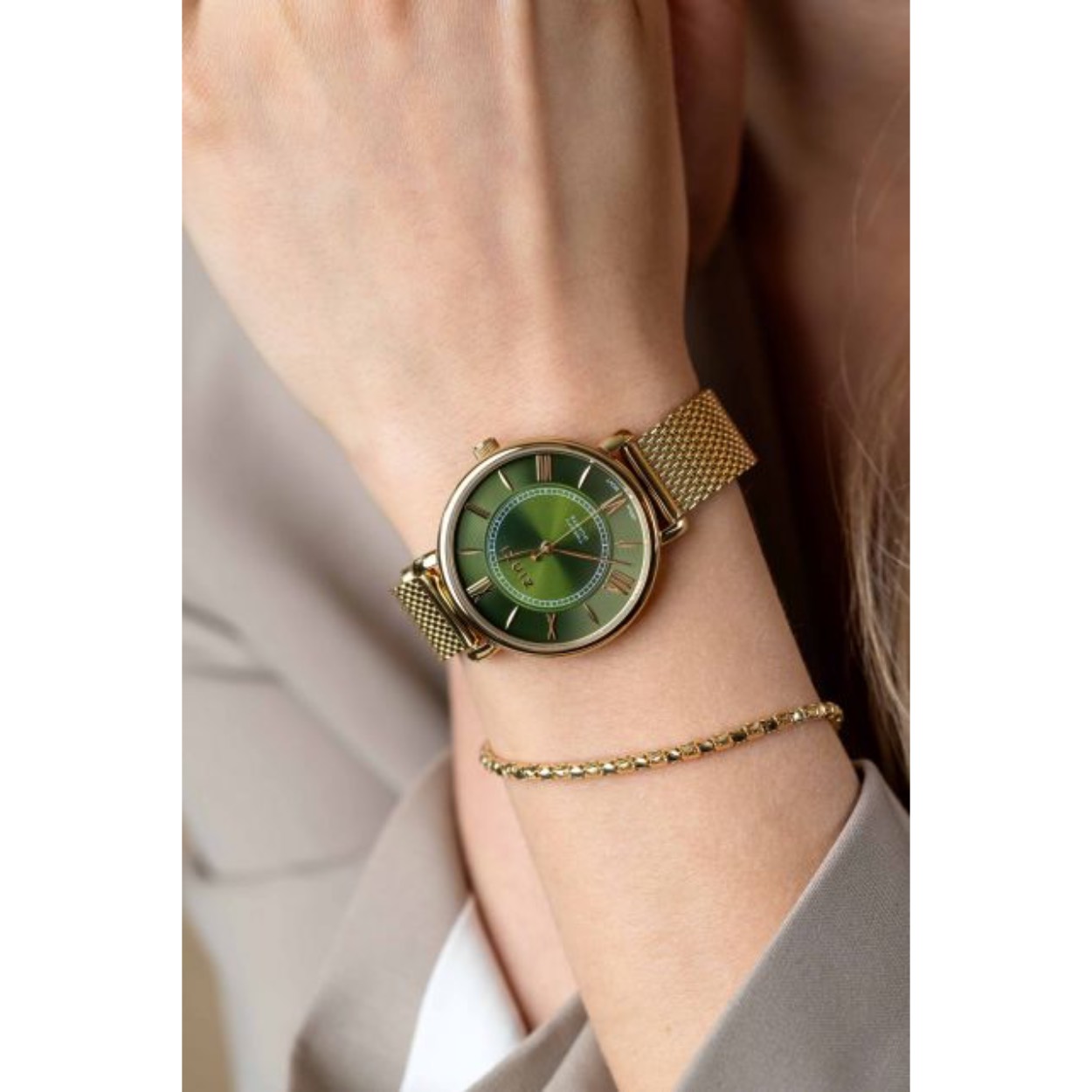 De Twenty watch is het twintigste model dameshorloge van Zinzi. Voorzien van een groene 'sunray' wijzerplaat, een mooie ronde geelgoudkleurige kast van 34mm en geelgoudkleurige mesh band. Natuurlijk met de bekende Zinzi touch ontworpen: het extra dunne Japanse uurwerk en de seconde wijzer met een subtiel hartje zorgen voor een fashionable look. Ook 5atm waterbestendig (tegen regen en spatwater) en met sterk mineraal glas.