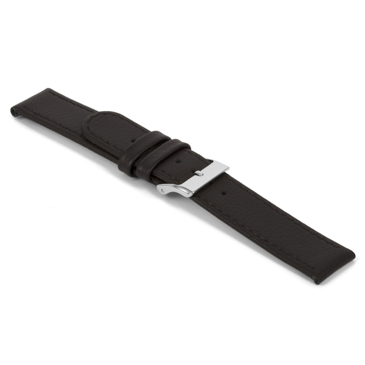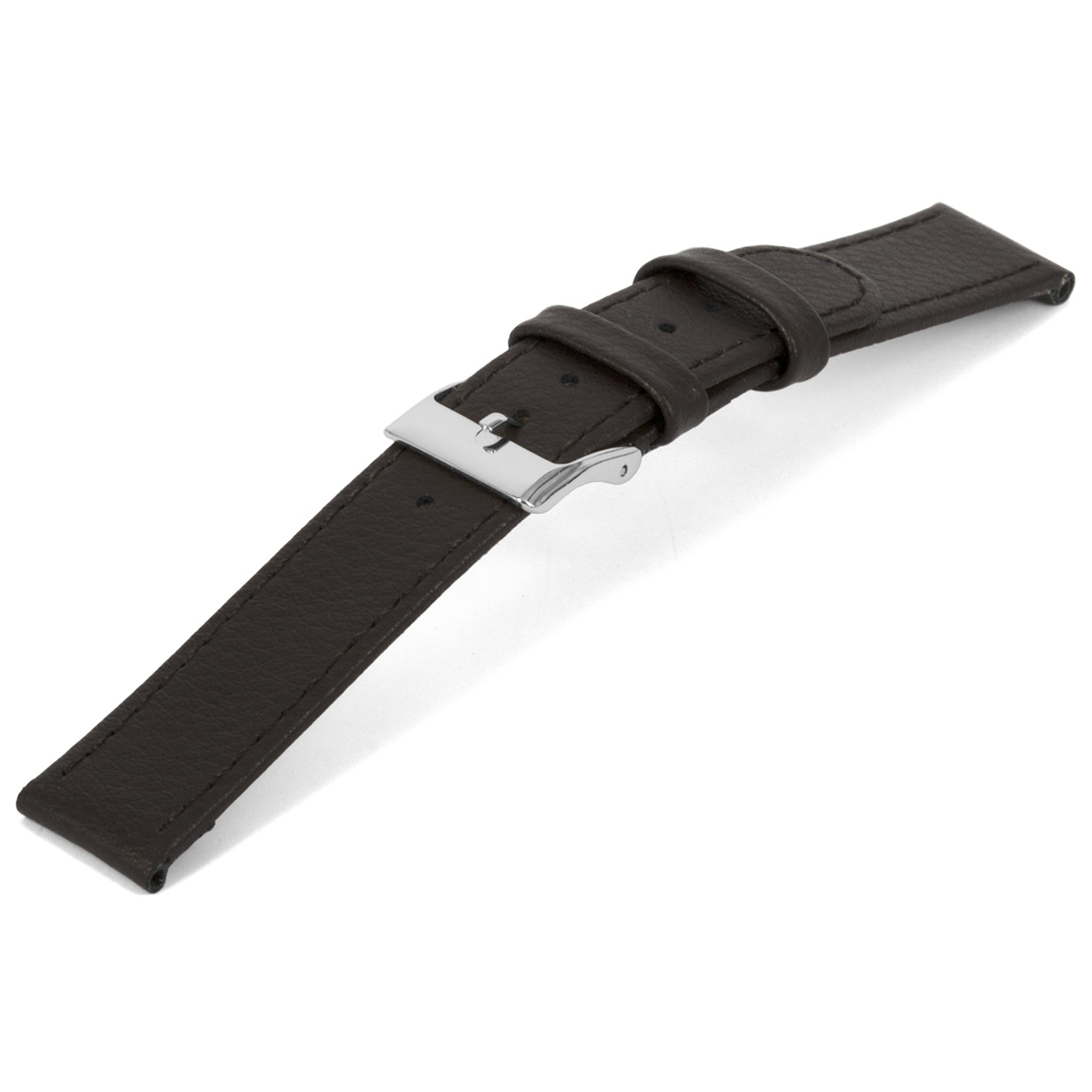 Bruin lederen horlogeband met zilverkleurig edelstalen gesp.