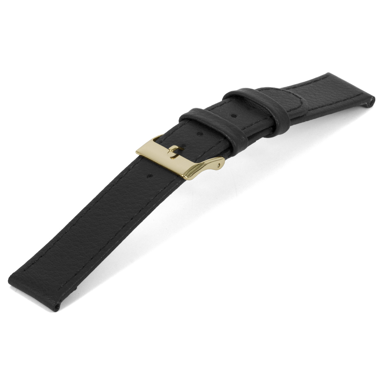 Zwart lederen horlogeband met goudkleurig aluminium gesp.