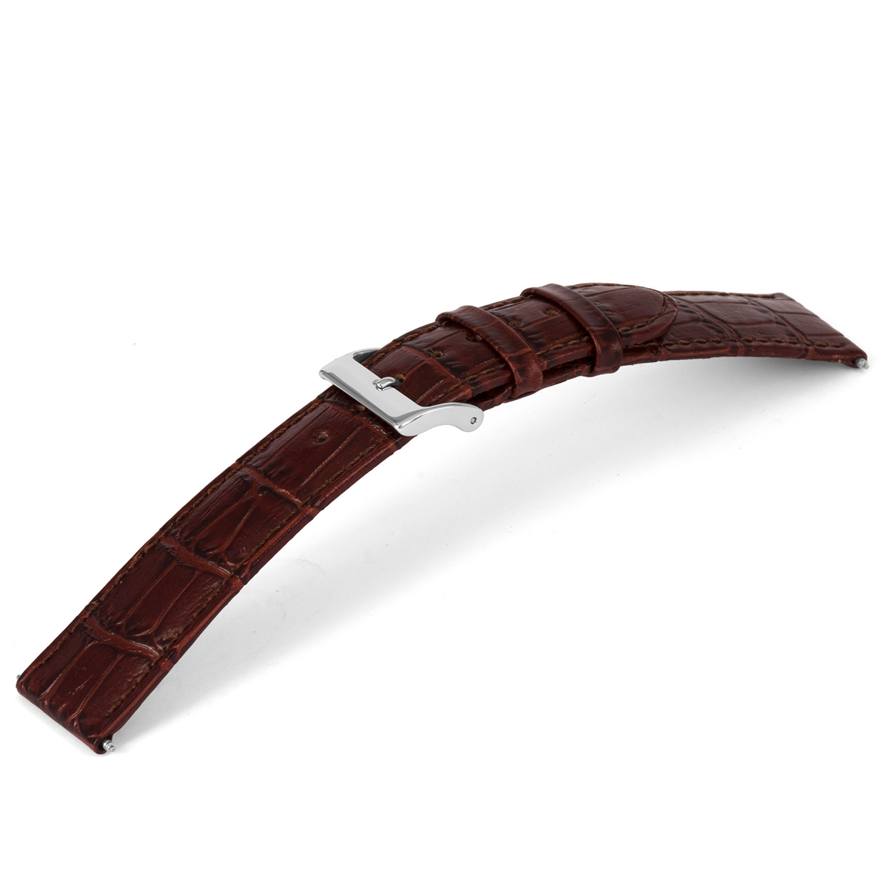 Italiaans lederen horlogeband, G62/OXF12, roodbruin, glad en gestikt.