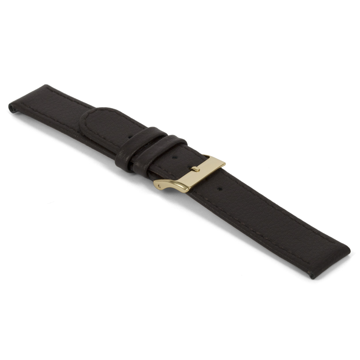 Bruin lederen horlogeband met goudkleurig aluminium gesp.