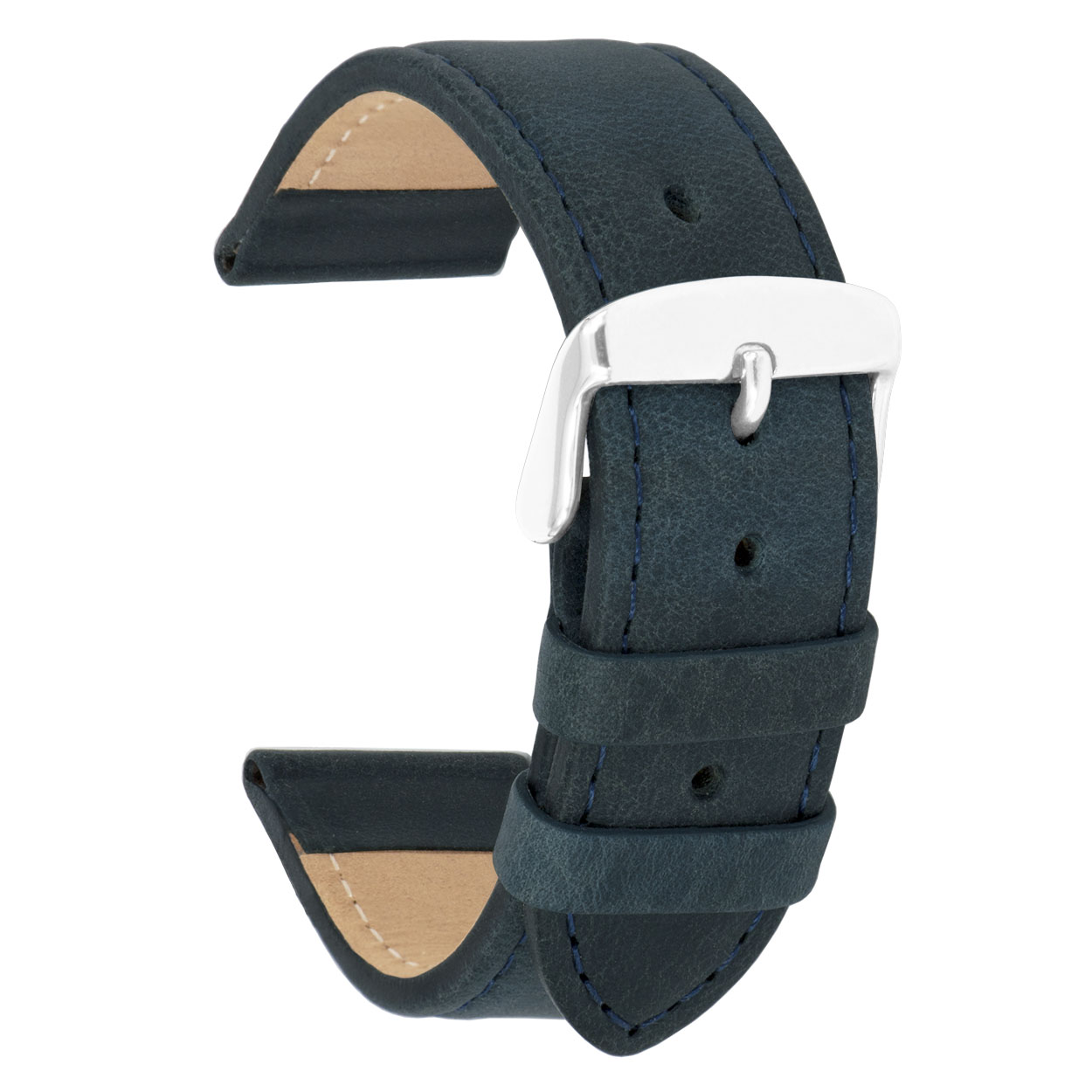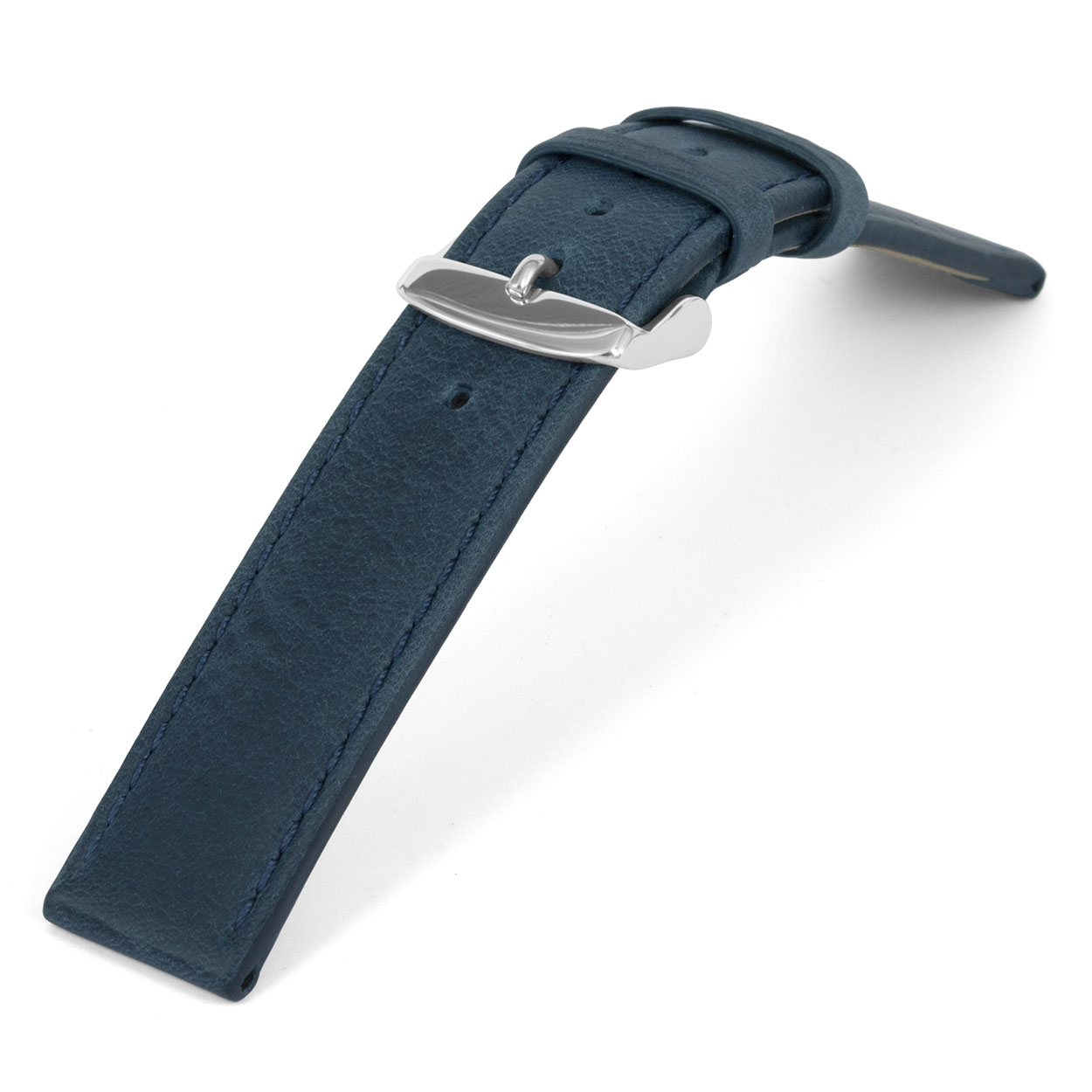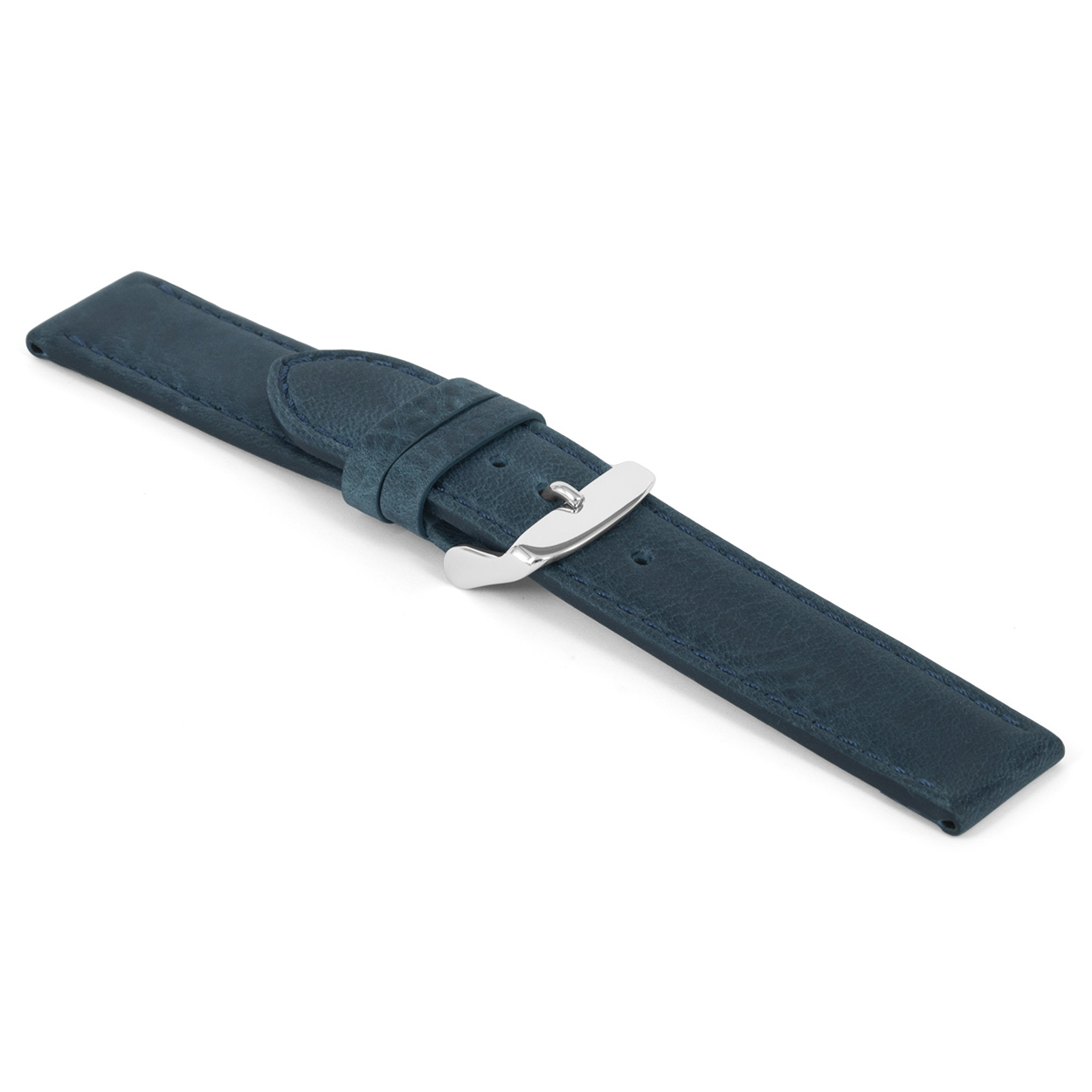 Italiaans lederen horlogeband, oily blauw en gestikt.