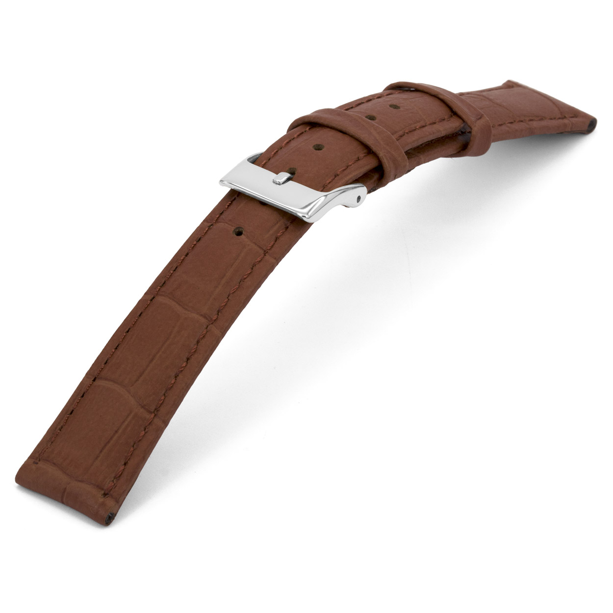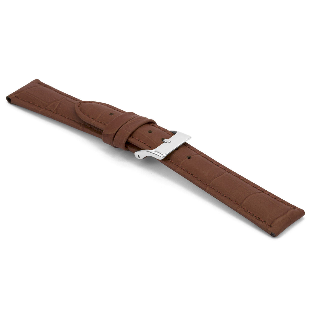 Bruin lederen horlogeband met zilverkleurig edelstalen gesp.