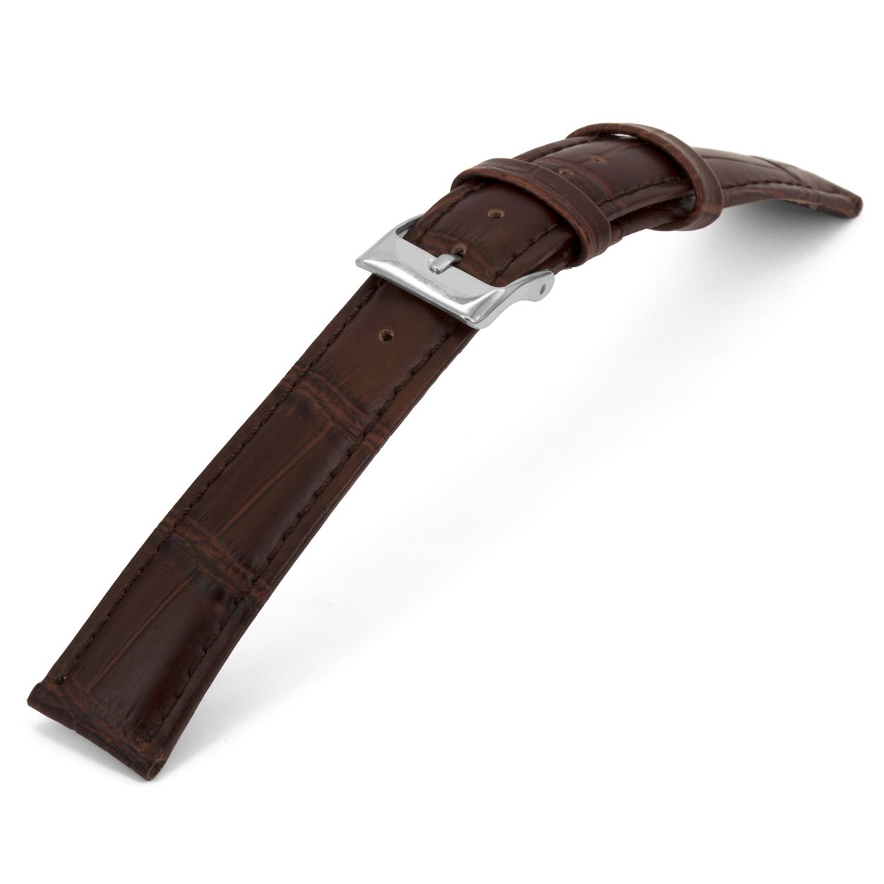 Italiaans lederen horlogeband bruin, extra lang, bewerkt en gestikt.