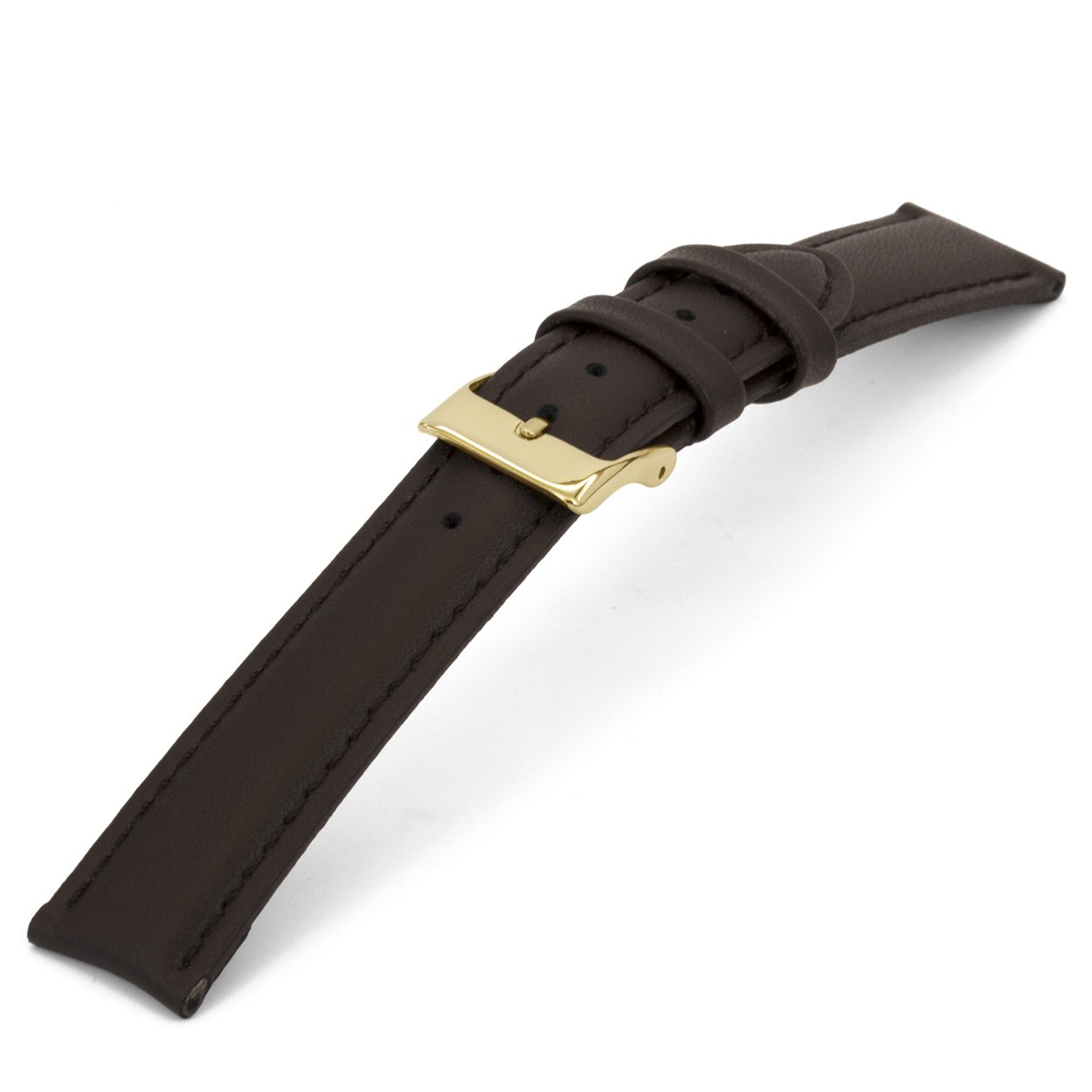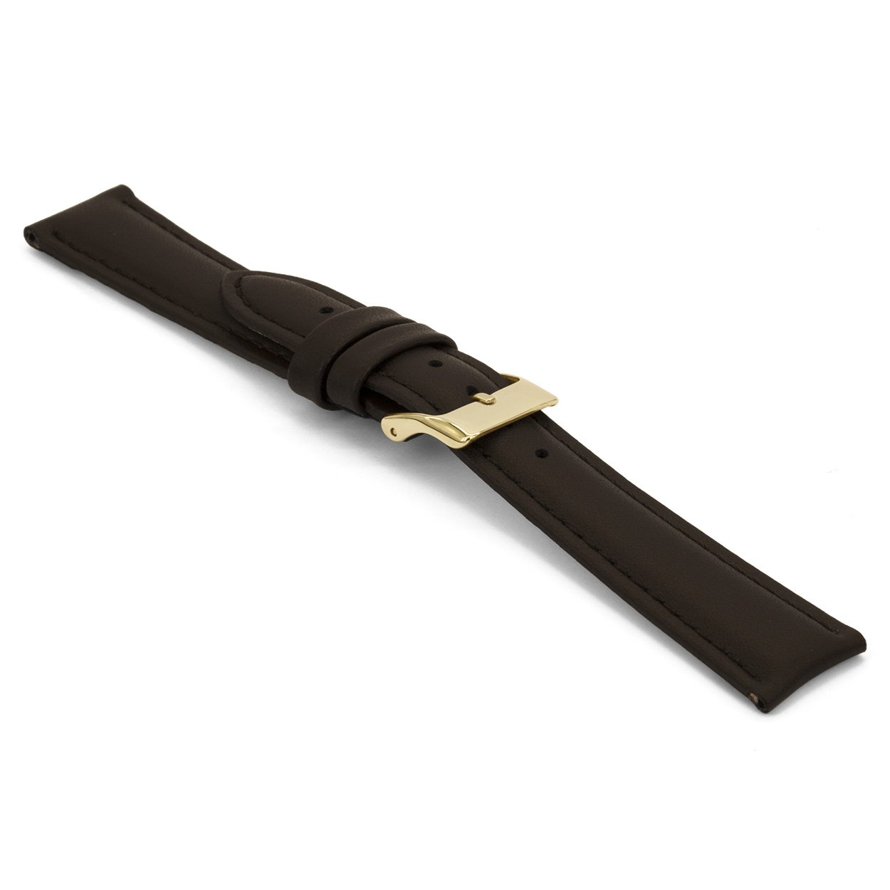 Bruin lederen horlogeband licht gevuld met goudkleurig edelstaal gesp.
