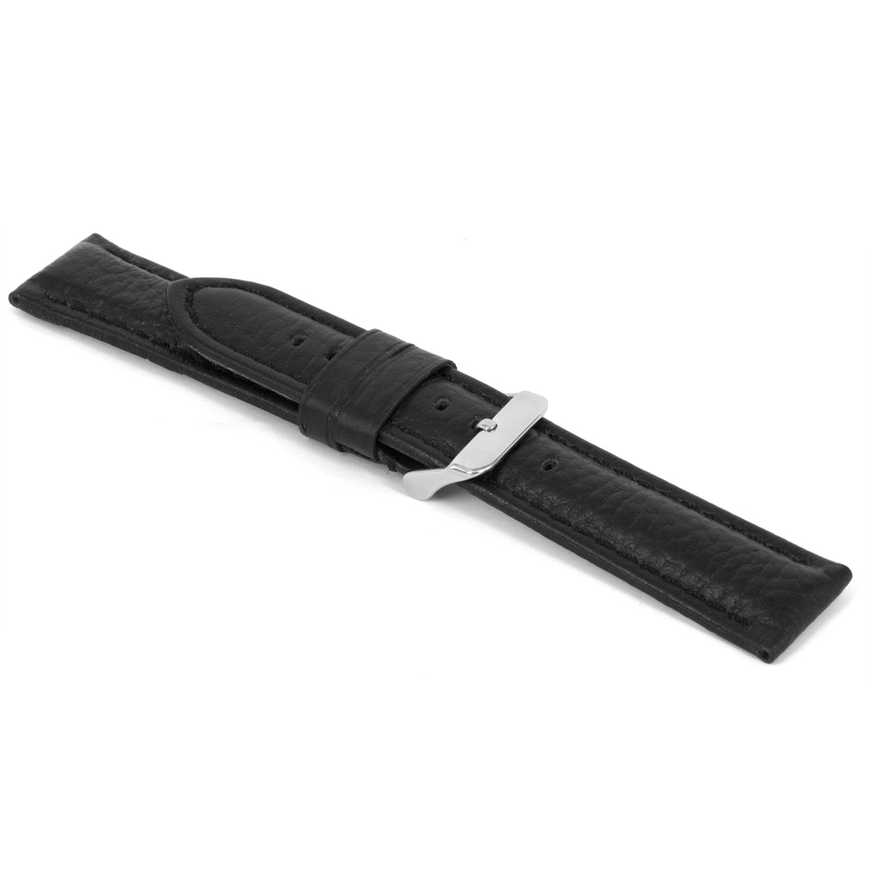 Kalfslederen horlogeband met zilverkleurig edelstalen gesp.