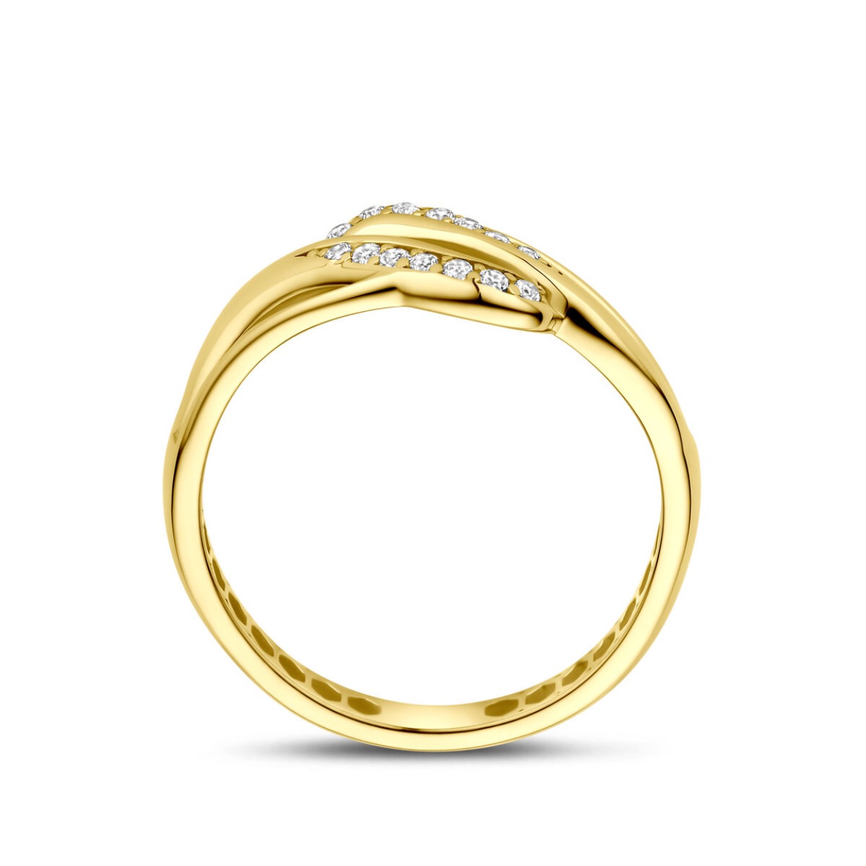 Huiscollectie 14krt geelgouden ring uitgevoerd met zirkonia. De ring heeft een breedte van 9mm.