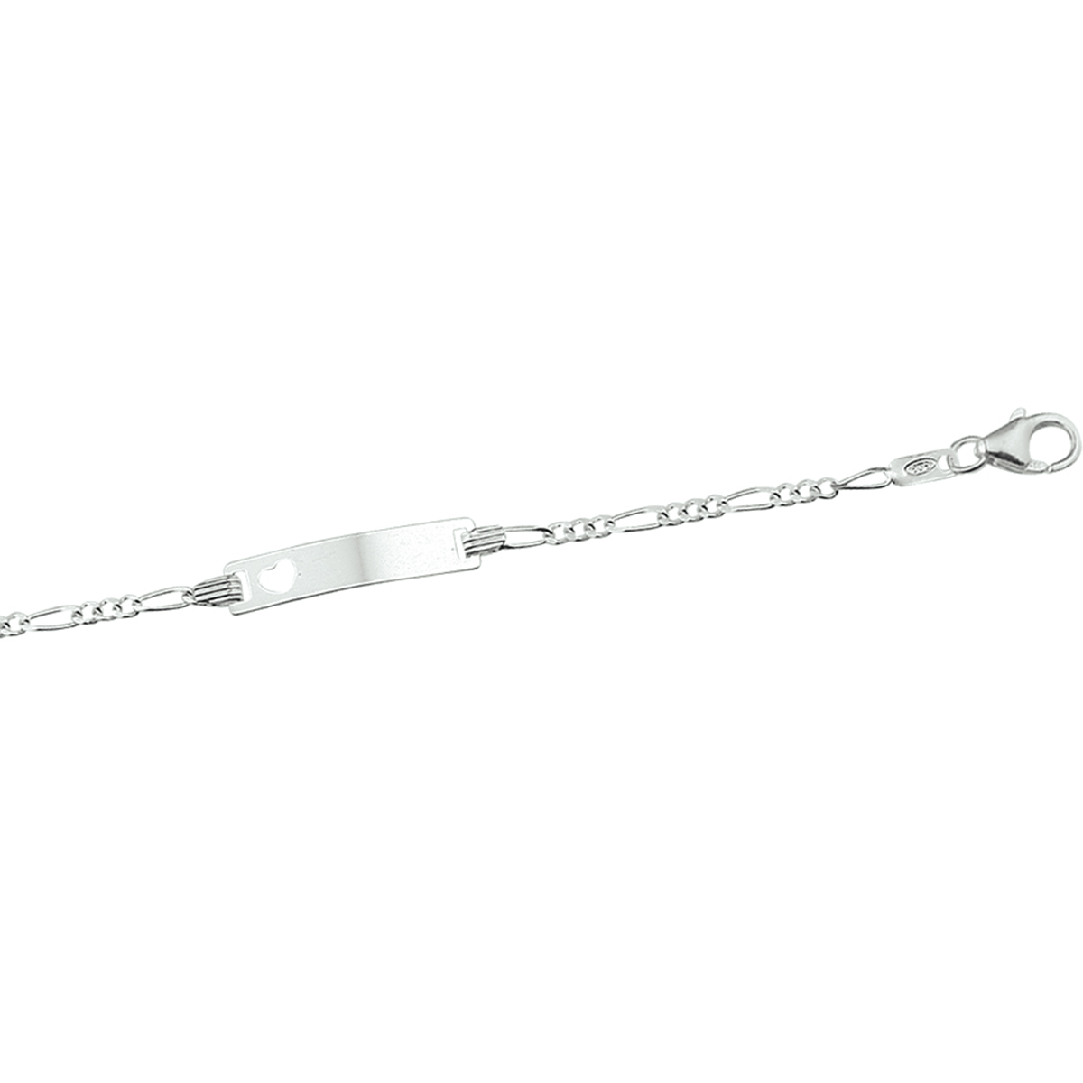 Gerhodineerd zlveren graveerarmband met een opengewerkt hartje in het graveerplaatje. De armband heeft een figaro schakel. Het graveerplaatje heeft een breedte van 4.2 millimeter. De lengte bedraagt 9 centimeter met 2 centimeter extensie. Deze lengte is geschikt voor pas geboren meisjes en jongens tot 8 maanden (afhankelijk flink of tenger)... Leuk als kraam- of verjaardagscadeau. U kunt één naam gratis laten graveren. De gravure kunt u vermelden in het opmerkingenveld tijdens het bestelproces. Gegraveerde artikelen kunnen niet worden geruild.
