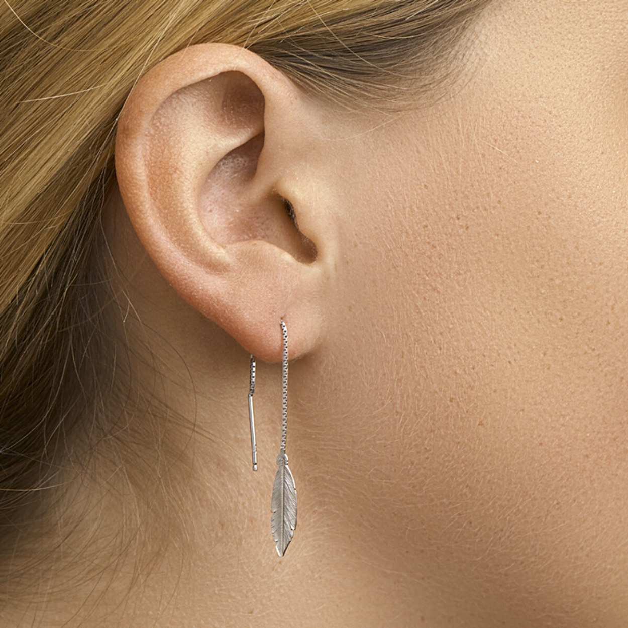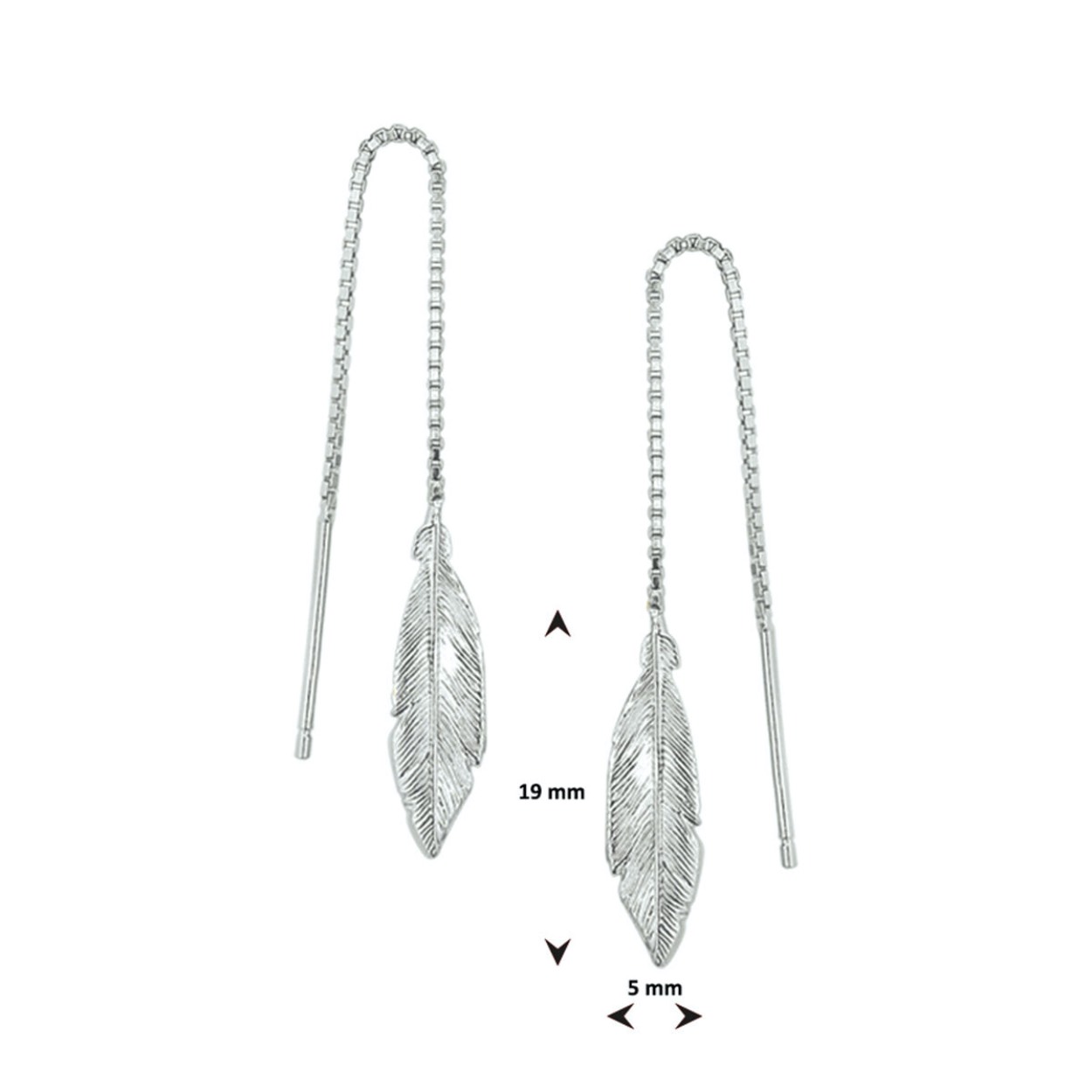 Gerhodineerd zilveren doortrekoorbellen met een veer.