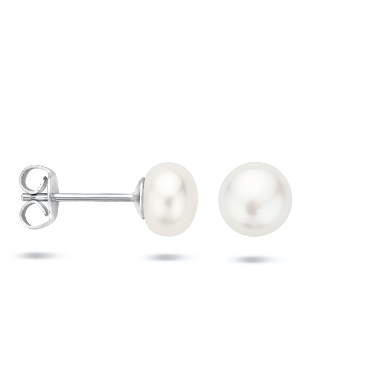 Gerhodineerd zilveren oorknoppen met een zoetwaterparel. De parel heft een diameter van 7,5mm.