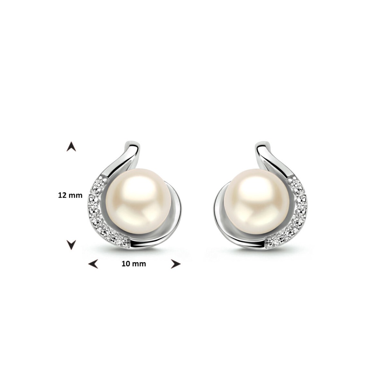 Gerhodineerd zilveren oorknoppen met zirkonia en zoetwaterparel. De oorknoppen zijn onderdeel van een set. Draag de oorknoppen samen met de bijpassende hanger.