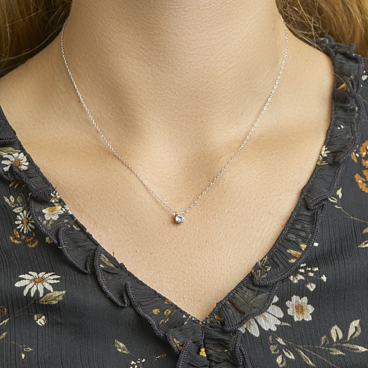Gerhodineerd zilveren collier met anker schakel. Aan de ketting hangt een hangertje met een zirkonia. De ketting heeft een breedte van 1,2 millimeter. De lengte van het collier is 41 centimeter met een extensie van 4 centimeter. De hanger met zirkonia heeft een breedte van 4,5 millimeter.