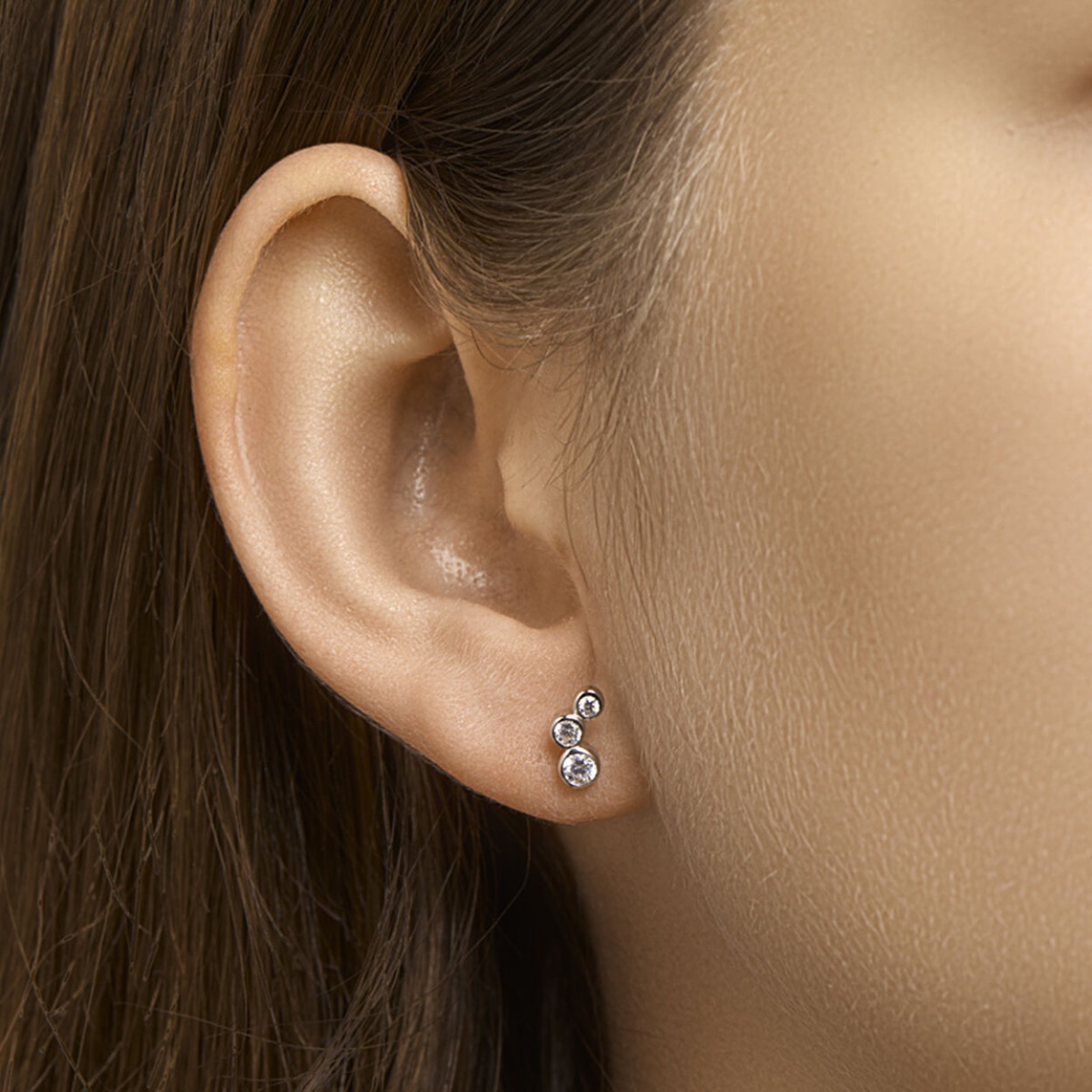 Huiscollectie  zilveren oorknoppen met drie zirkonia's
