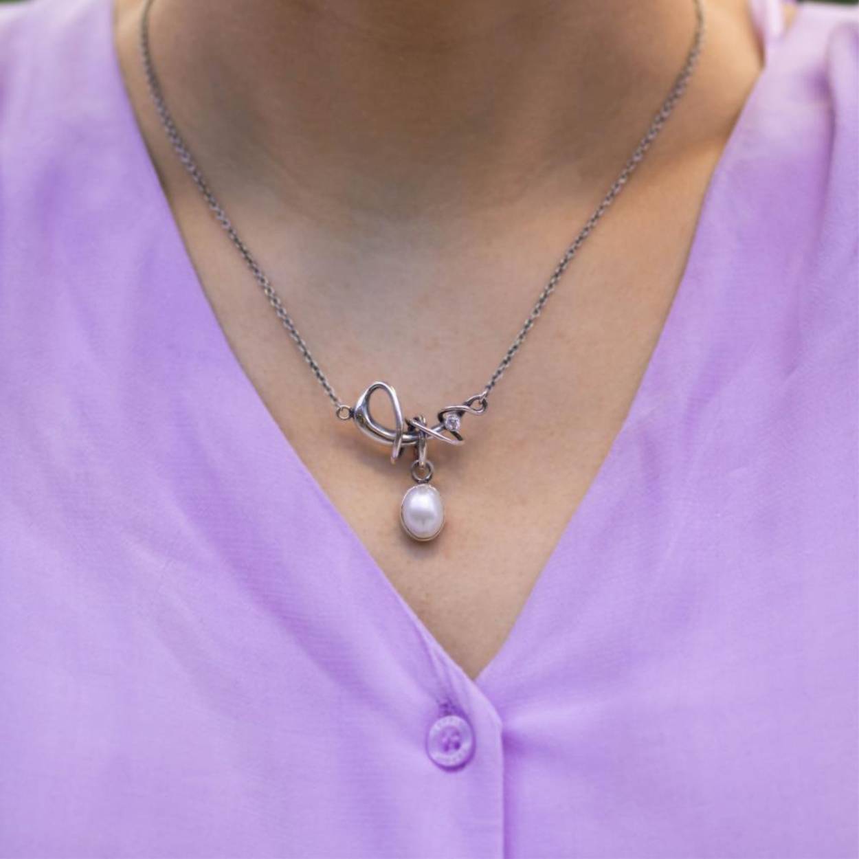 Deze sterling zilveren ketting heeft een mooie hanger met een witte parel van 8,5 à 9 mm en is afgewerkt met een 3mm zirkonia. De ketting kan op zowel 42 als 45 cm gedragen worden.